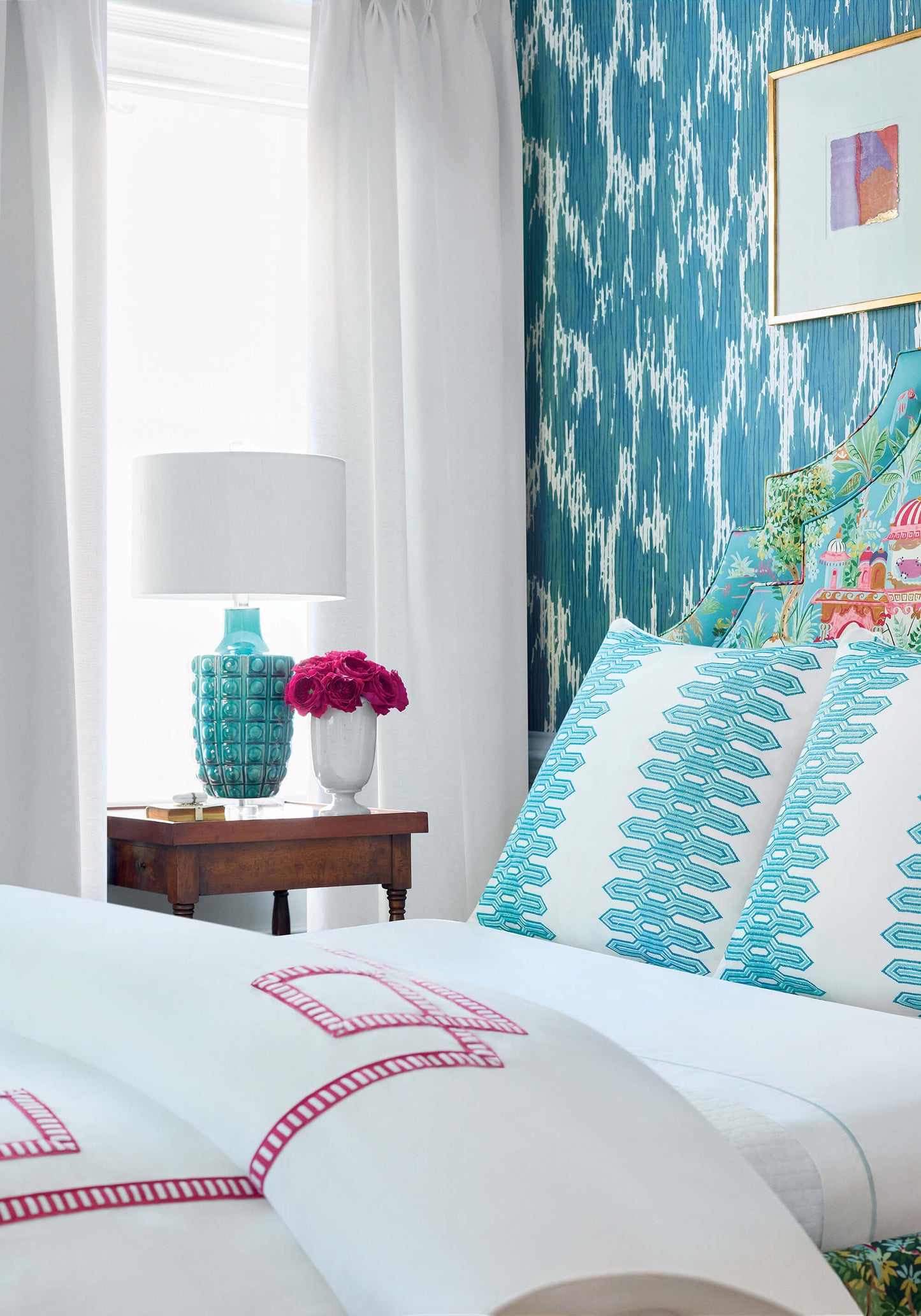 Eden is a whimsical approach to traditional patterns that lead you into paradise. Discover new wallpaper and fabric, bringing vibrant style and optimism to Thibaut fresh, signature color palette. This collection radiates a fashionable fantasy and introduces unique patterns such as a painterly interpretation of an Ikat, scenic compositions of lush gardens, and small-scale geometrics.