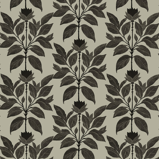 Thibaut Islander Summer Leaves Wallpaper - Charcoal