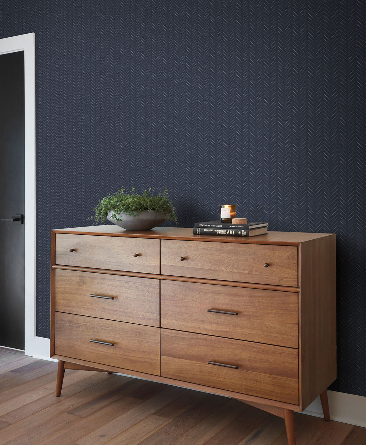 Chip and Joanna have done it again. Modern, minimalist, and statement-making all the same. Magnolia Homes Pickup Sticks wallpaper features a playful, narrow, and abstract herringbone pattern. Magnolia Home wallpaper is incredibly easy to hang or take down!