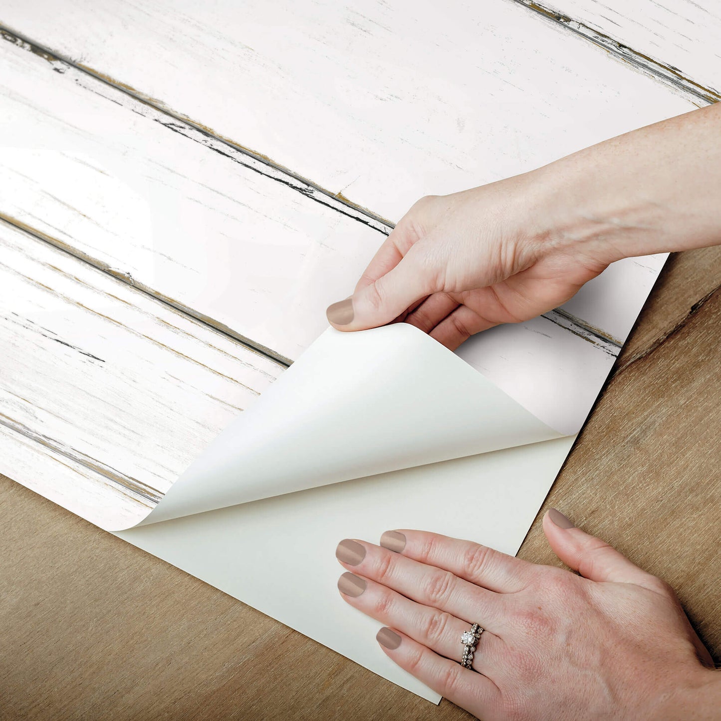 Perfect for dorms and apartments, the rustic farmhouse look is now easier than ever to achieve. Ship lap has quickly become a staple in modern farmhouse decor. White Shiplap Peel and Stick Wallpaper is perfect for dorms and apartments. Simply cut it to the correct size, remove the backing, and stick to any smooth, flat surface.