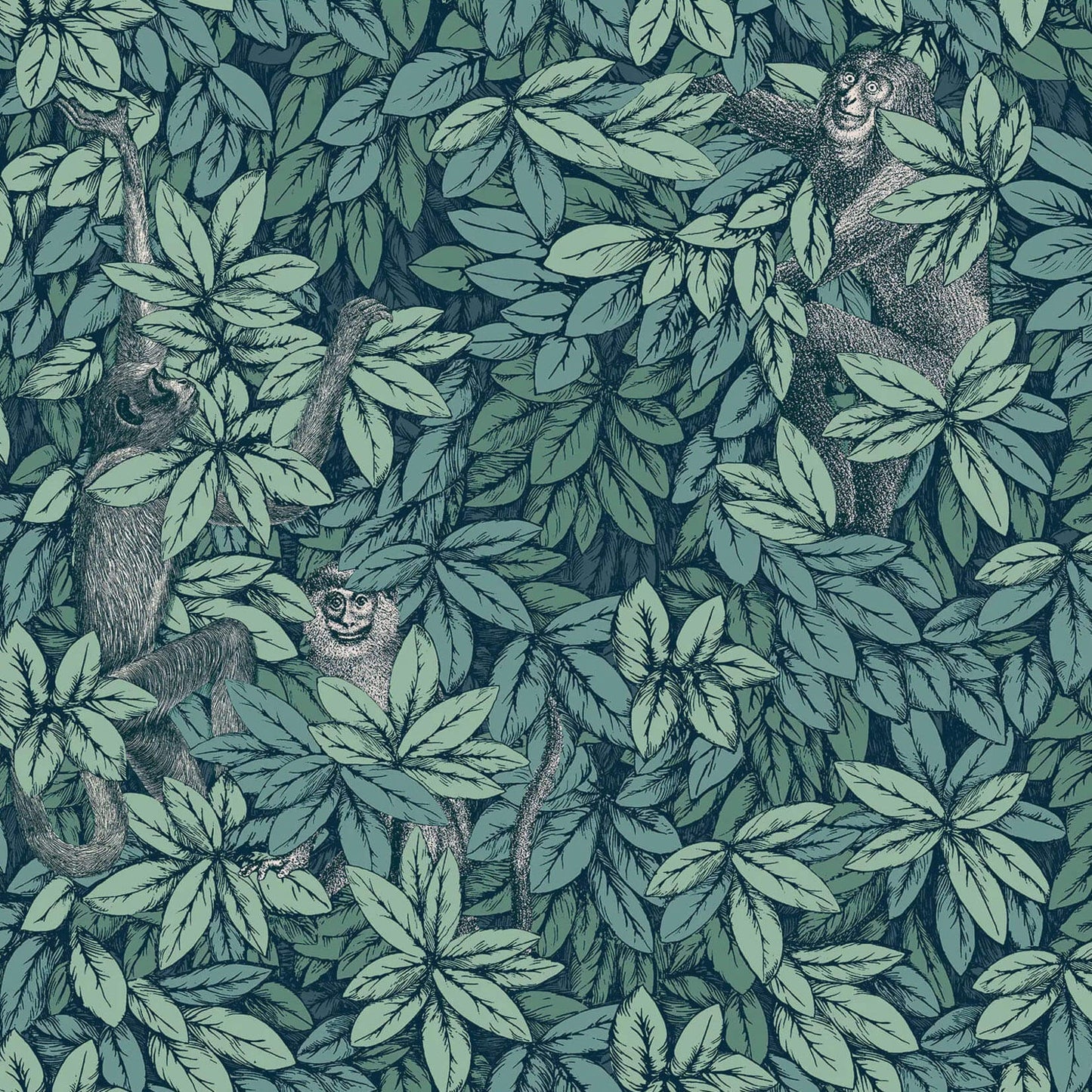 Cole & Son Fornasetti Senza Tempo II Foglie E Scimmie Wallpaper - Viridian