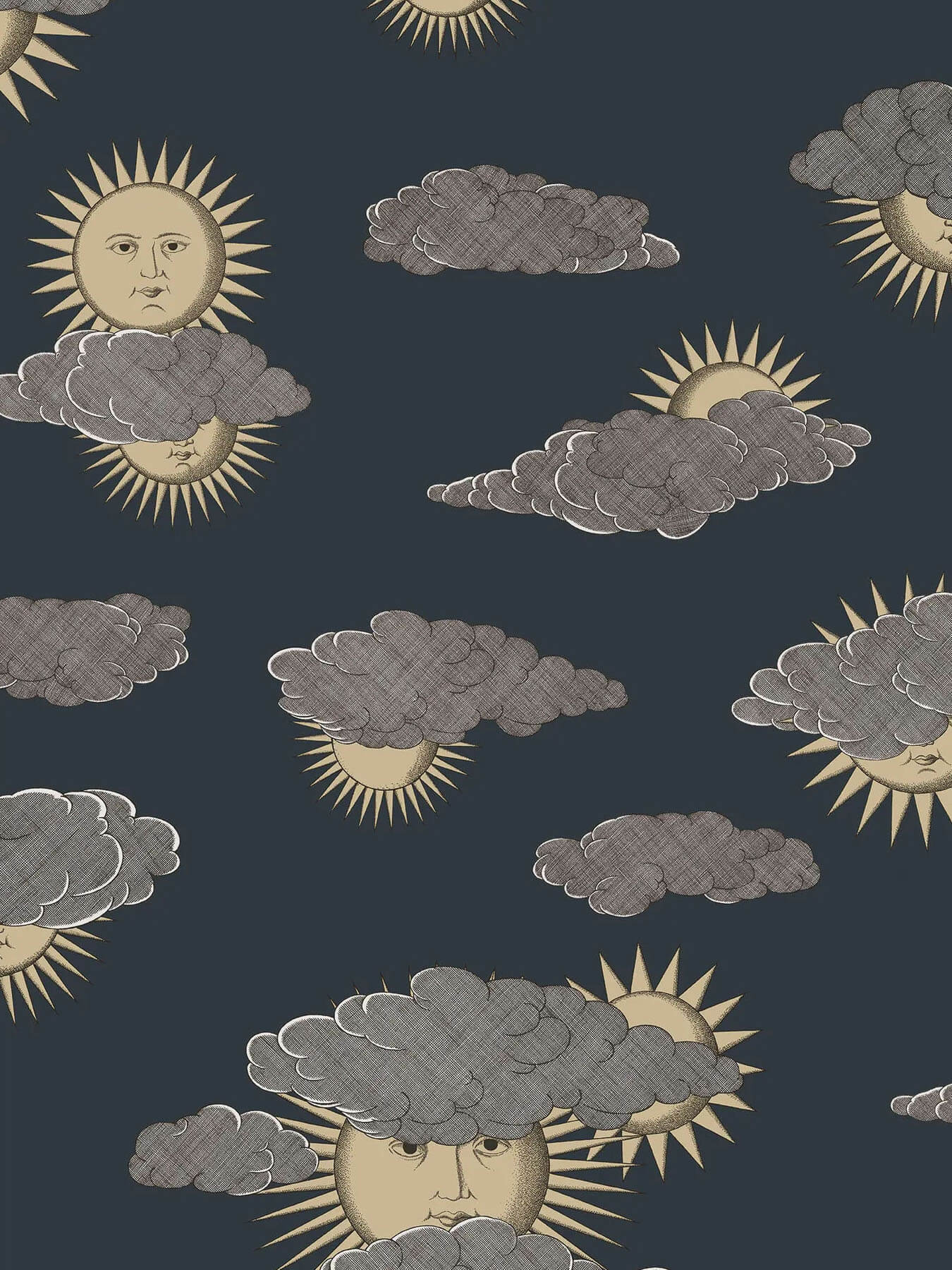 Cole & Son Fornasetti Senza Tempo II Soli E Nuvole Wallpaper - Gold & Silver