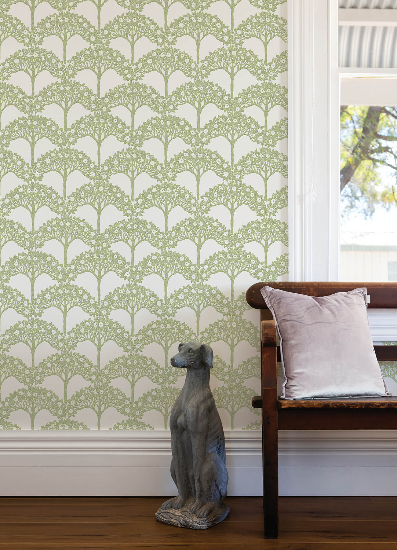 Infuse your home with rich character with this tree design’s architectural detailing. Inked in a crackled, two-toned green against off-white, this wallpaper has a slightly worn and well-loved feel. Dawson is an unpasted, non woven wallpaper. Decorate your home with the timeless, natural beauty of Revival by A-Street Prints. Celebrating rich ornamentation and masterful craftsmanship, this wallpaper collection is filled with a variety of artistic botanical designs and intricately styled geometric patterns that bring character and charm to your interior.
