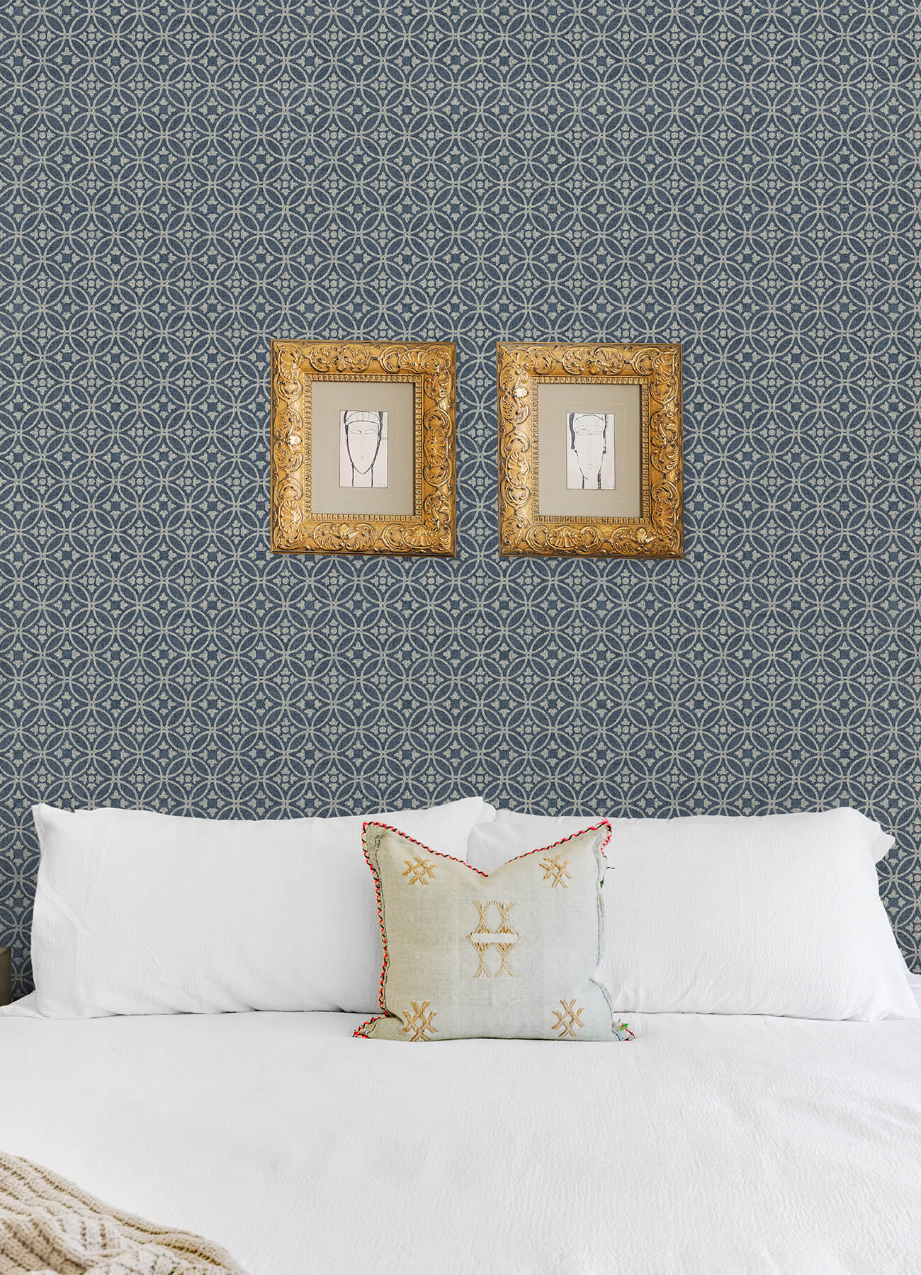 Add charming craftsman styling to your home with this geometric wallpaper! The rich navy background is stamped with a grid of white, overlapping circles accented with a simple floral embellishment. Larsson is an unpasted, non woven wallpaper. Decorate your home with the timeless, natural beauty of Revival by A-Street Prints. Celebrating rich ornamentation and masterful craftsmanship, this wallpaper collection is filled with a variety of artistic botanical designs and intricately styled geometric patterns that bring character and charm to your interior.