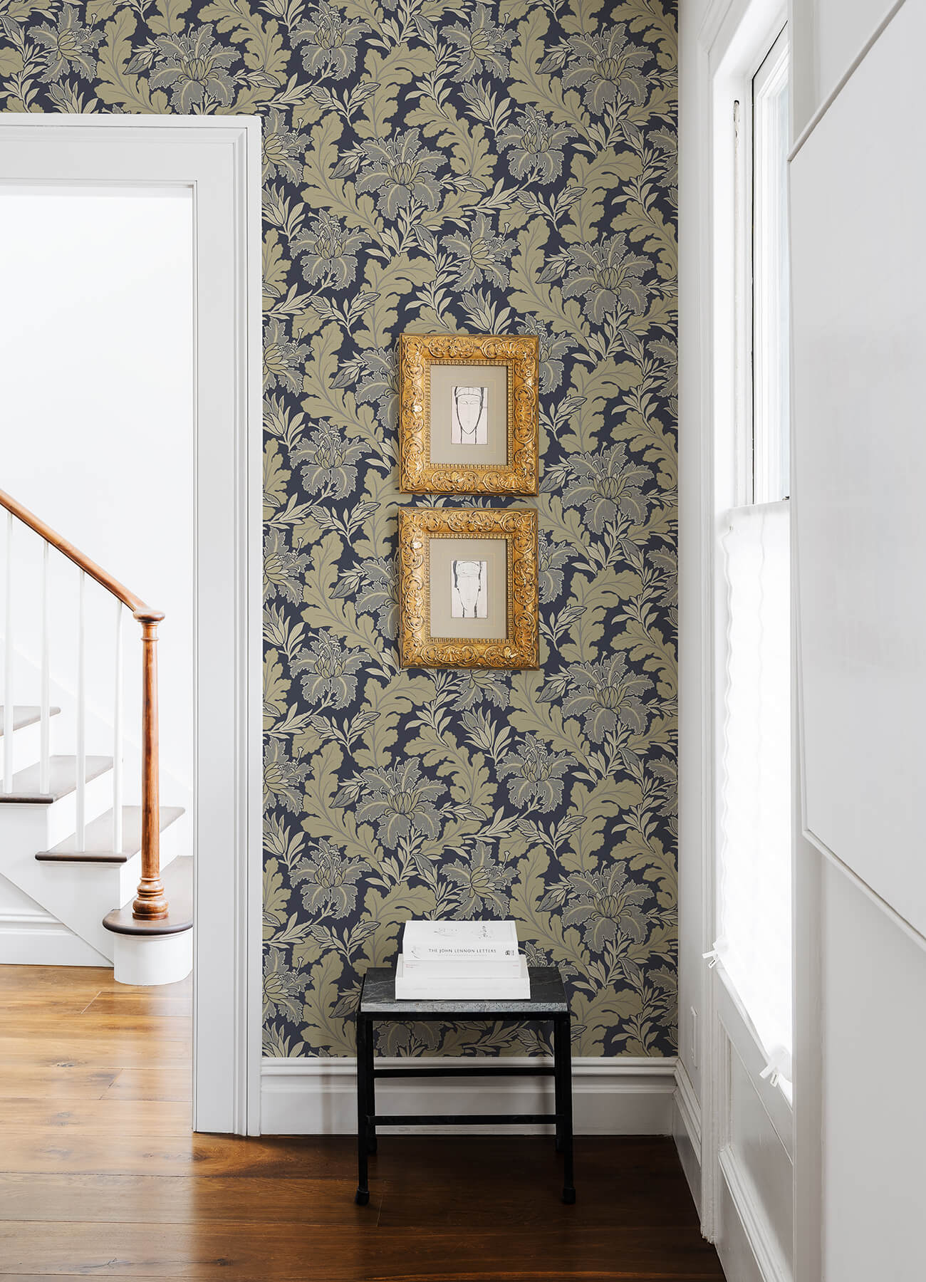 A-Street Prints Revival Butterfield Floral Wallpaper - Navy