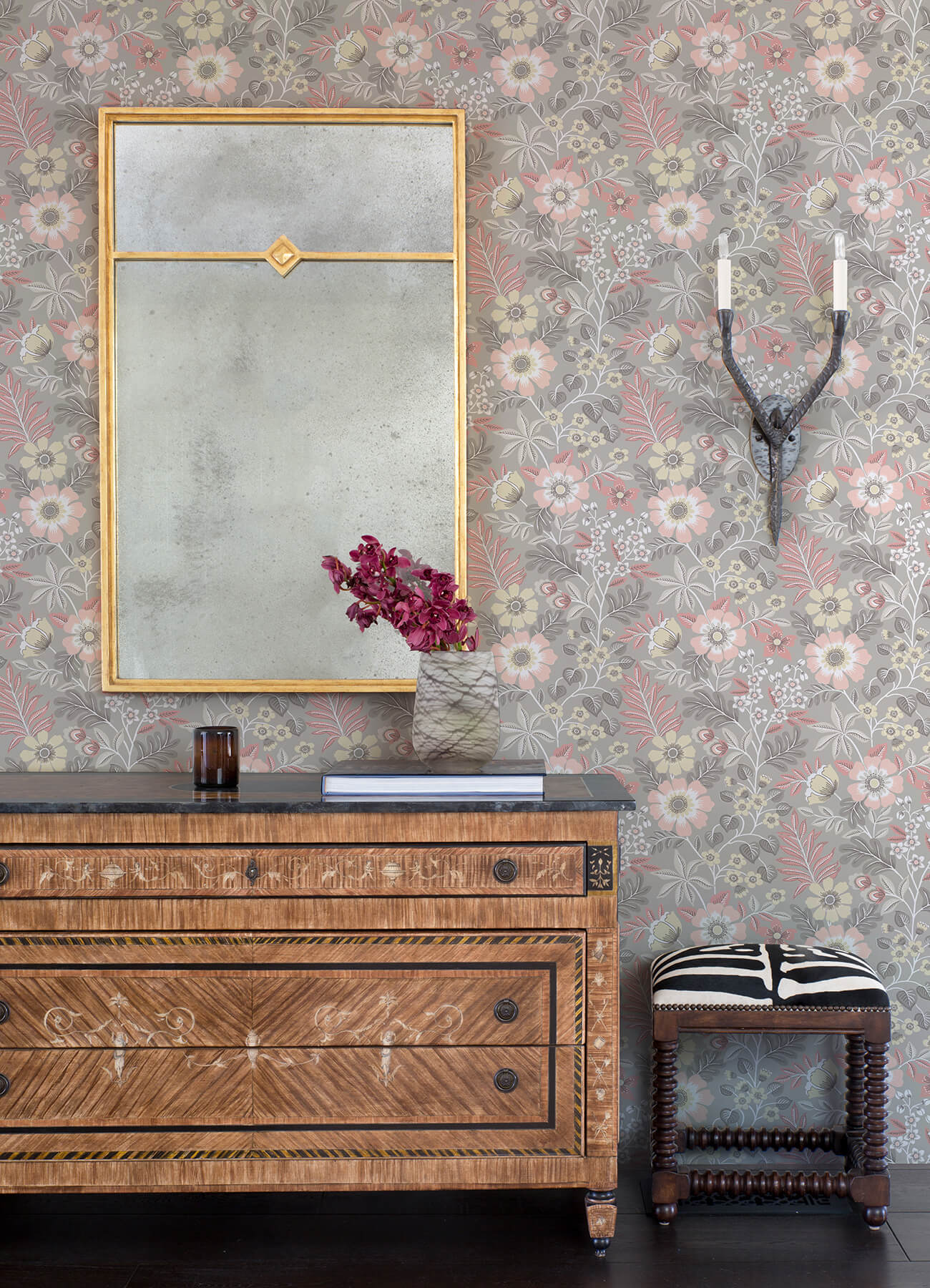 This sweet and slightly retro floral design will add considerable character to your home. The simple and charming illustrative design of the flowers and leaves is amplified by its pink, taupe and grey color palette. Voysey is an unpasted, non woven wallpaper. Decorate your home with the timeless, natural beauty of Revival by A-Street Prints. Celebrating rich ornamentation and masterful craftsmanship, this wallpaper collection is filled with a variety of artistic botanical designs and intricately styled geometric patterns that bring character and charm to your interior.