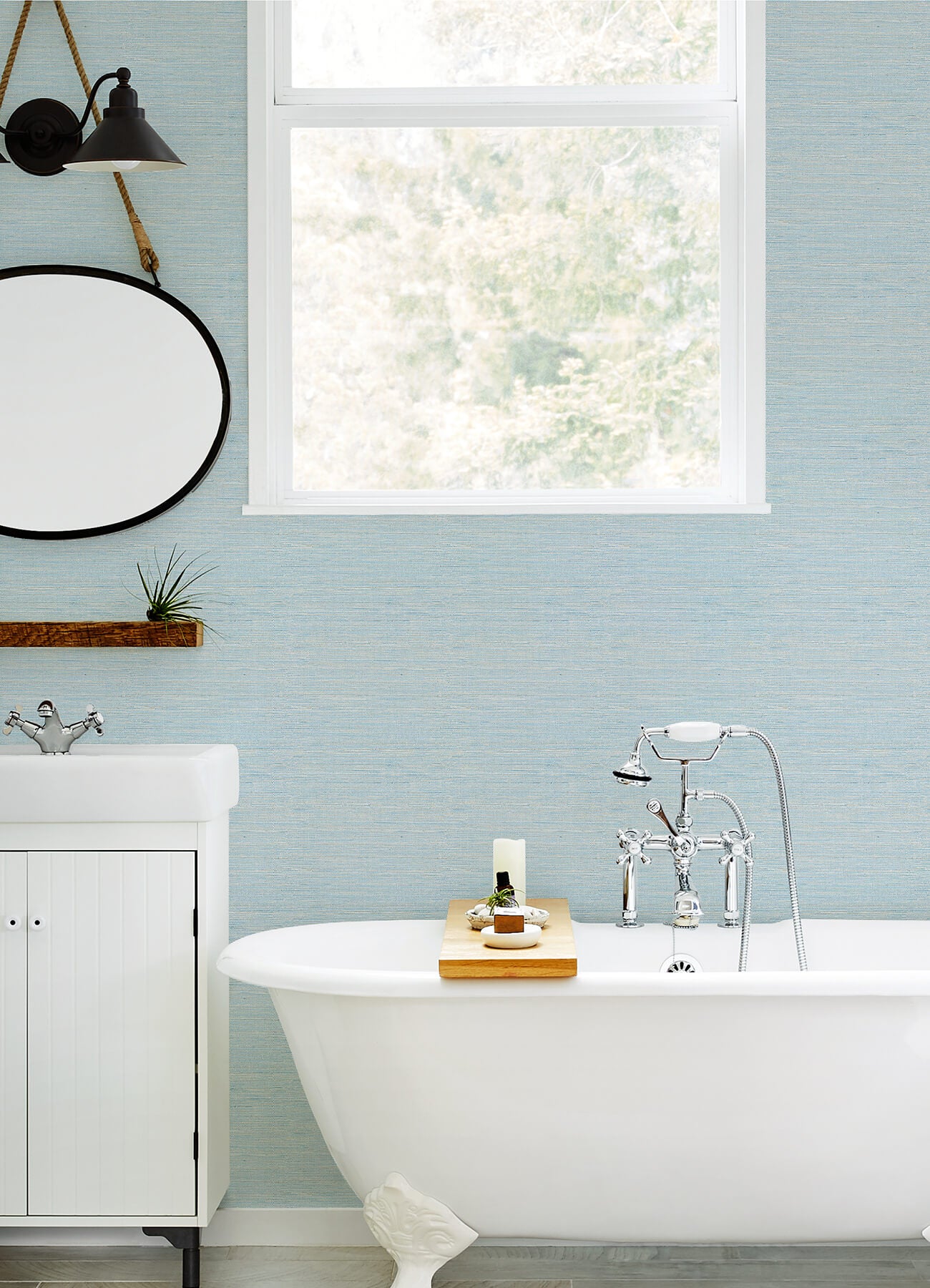 A variety of blue hues make up this beautiful faux grasscloth wallpaper. Raised inks mimic the look and feel of authentic grasscloth, bringing timeless dimension to your walls. Agave is an unpasted, non woven wallpaper. Enjoy the warm and welcoming ambiance of the natural world with Thoreau by Chesapeake. From classic designs with a modern twist to more contemporary comforts, this collection will bridge the gap between the great outdoors and the comforts of home.