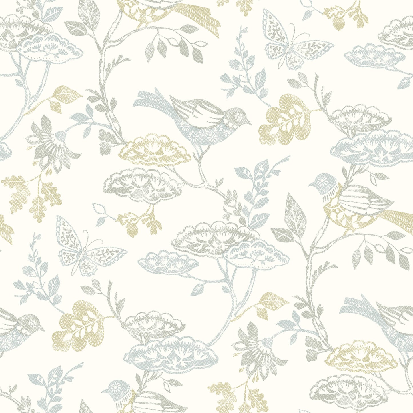 Quilted mustard, sky blue, and grey detailing adds an extra cozy touch to this charming, bird and butterfly-dotted floral trail design. Malmo is a prepasted, sure strip wallpaper measuring 20.5 inches wide by 33 feet long, covering approximately 56.4 square feet per roll. Chesapeake wallpapers are classically beautiful. Each collection centers around a thematic influence, using familiar motifs and versatile prints to capture the essence of styles like coastal chic, French country, rustic charm, and traditional elegance. The high quality patterns are designed to be enduring and timeless.