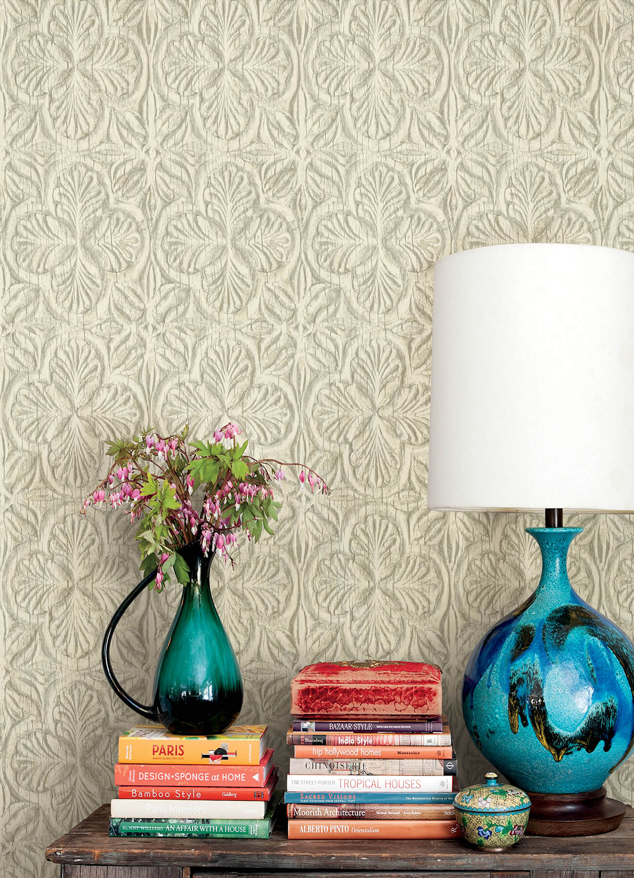 Chesapeake Kinfolk Karachi Wooden Damask Wallpaper - Cream
