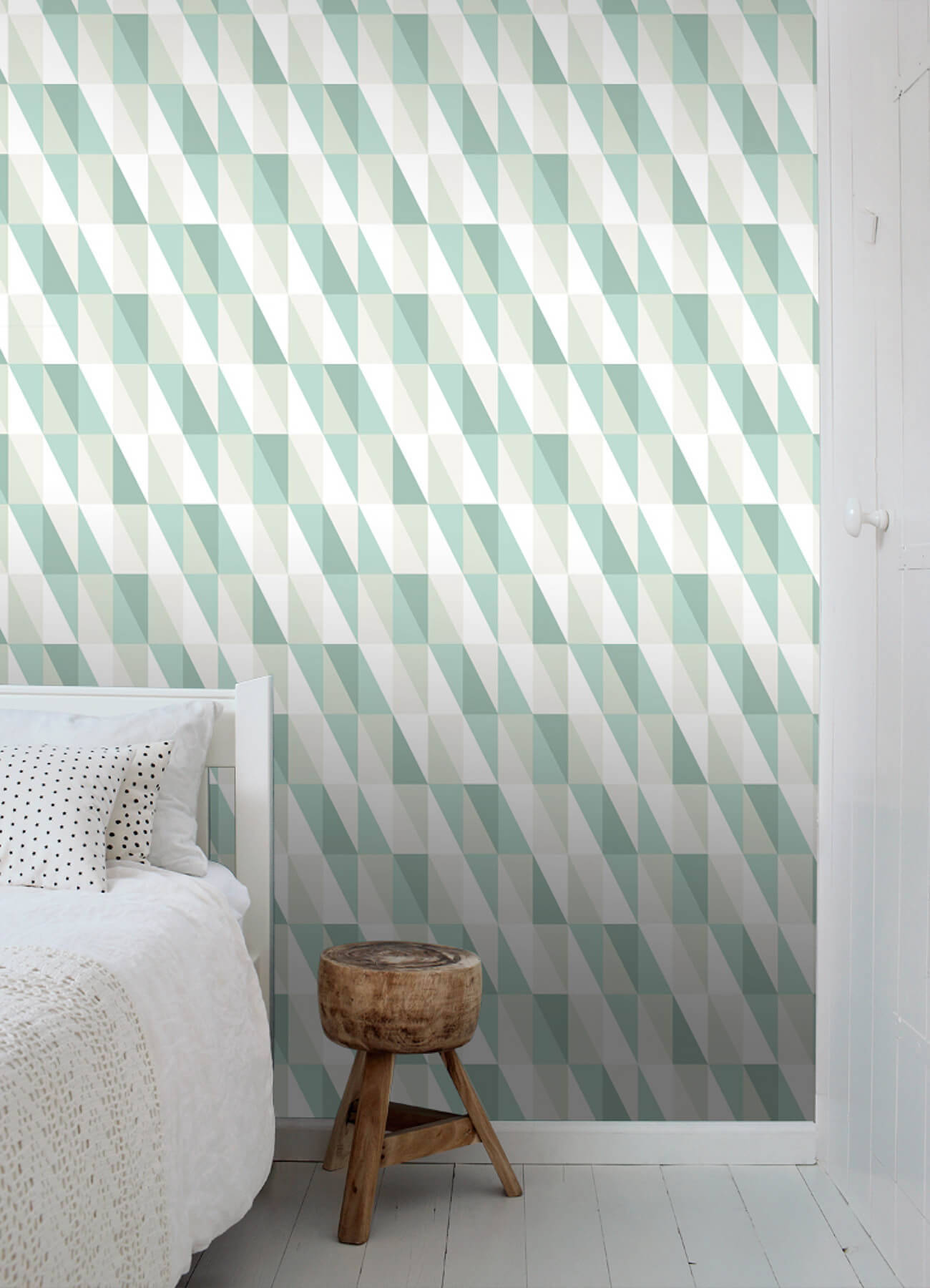 Add a contemporary accent to your space with this geometric print. This cool-toned print features triangles in various shades of teal and light green. Inez is an unpasted, non woven wallpaper. Inspire curiosity and joy with the imaginative stylings of Fable by Chesapeake. From whimsical woodland scenes to butterfly gardens and fun novelty prints, this collection features imaginative prints for every child's space.