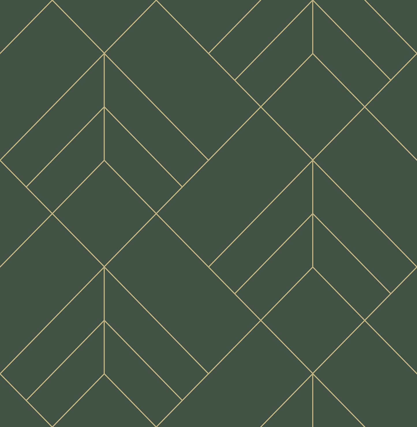 This moody geometric wallpaper adds a hint of timeless luxury to your walls. The diamond geometrics are shaped by thin lines of metallic gold along a rich green backdrop. Sander is an unpasted, non woven wallpaper.