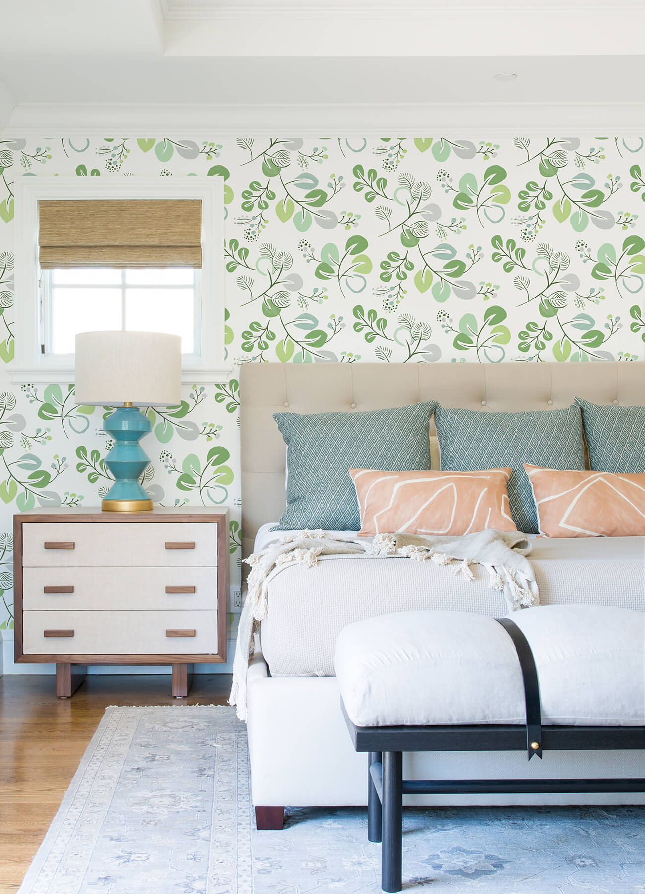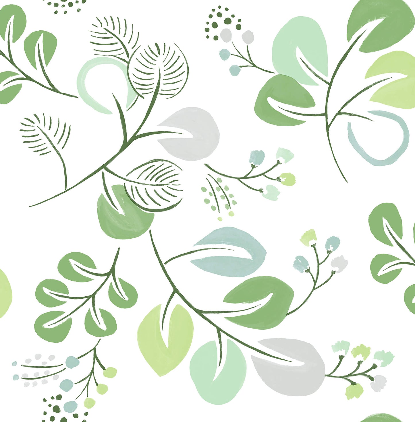 Bring the essence of springtime to your home with this delightful botanical wallpaper. The large, trailing leaves are artistically styled and painted in an array of delicate greens along a white backdrop. Jonah is an unpasted, non woven wallpaper.