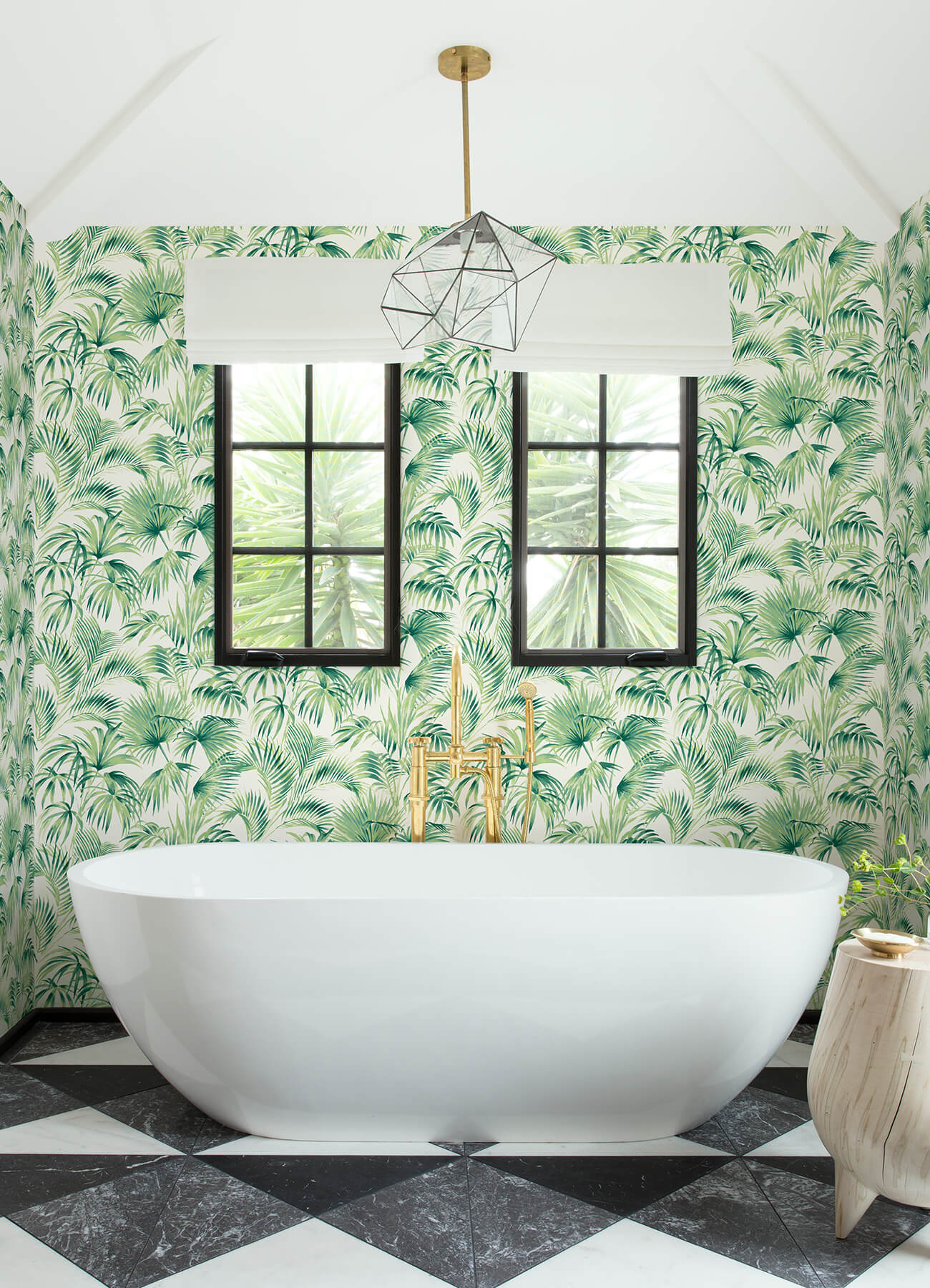 Bring tropical relaxation to your home with this chic palm leaf wallpaper. The fanning palm fronds are painted in shades of green along a crisp white background. Manaus is a prepasted, sure strip wallpaper. Chesapeake wallpapers are classically beautiful. Each collection centers around a thematic influence, using familiar motifs and versatile prints to capture the essence of styles like coastal chic, French country, rustic charm, and traditional elegance. The high-quality patterns are designed to be enduring and timeless.