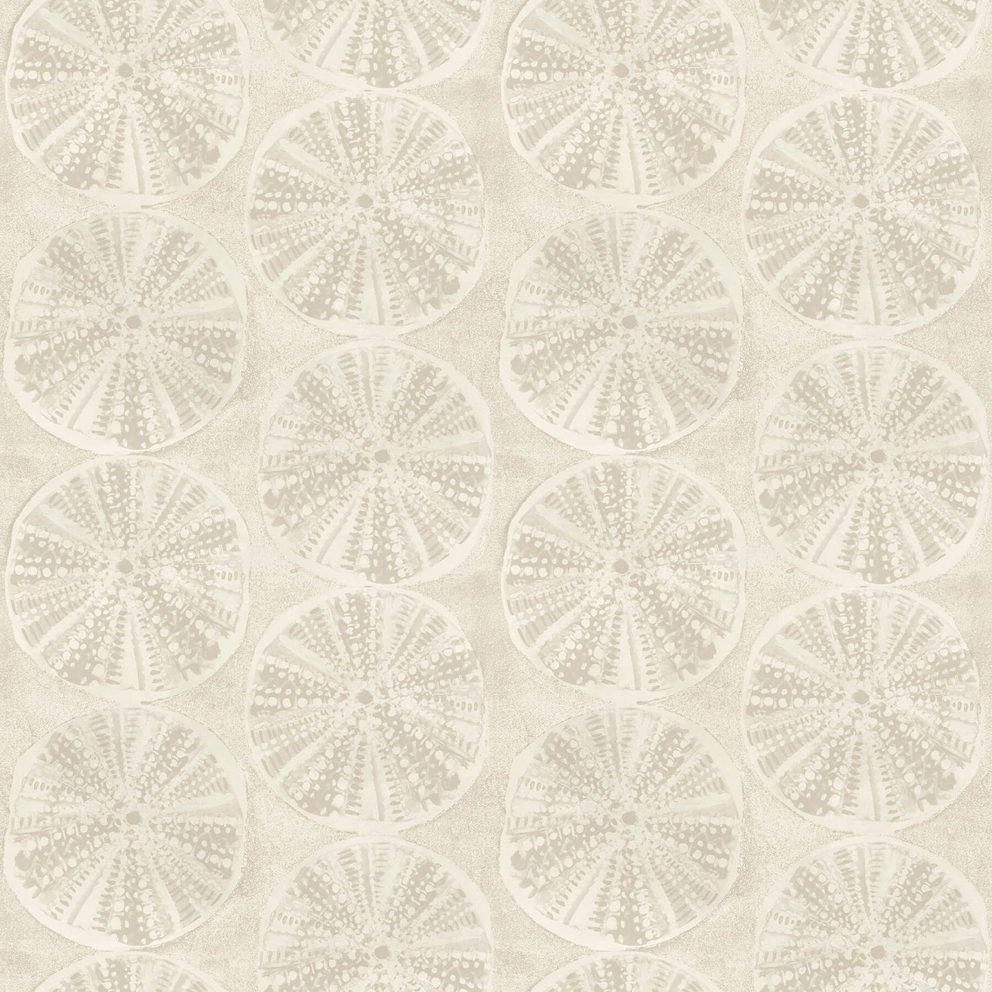Feel as if you're strolling warm, sandy beaches with this coastal wallpaper. Sand dollars with their iconic star patterned tops form columns along a beige backdrop. Sea Biscuit is a prepasted, sure strip wallpaper. Chesapeake wallpapers are classically beautiful. Each collection centers around a thematic influence, using familiar motifs and versatile prints to capture the essence of styles like coastal chic, French country, rustic charm, and traditional elegance. The high-quality patterns are designed to be enduring and timeless.