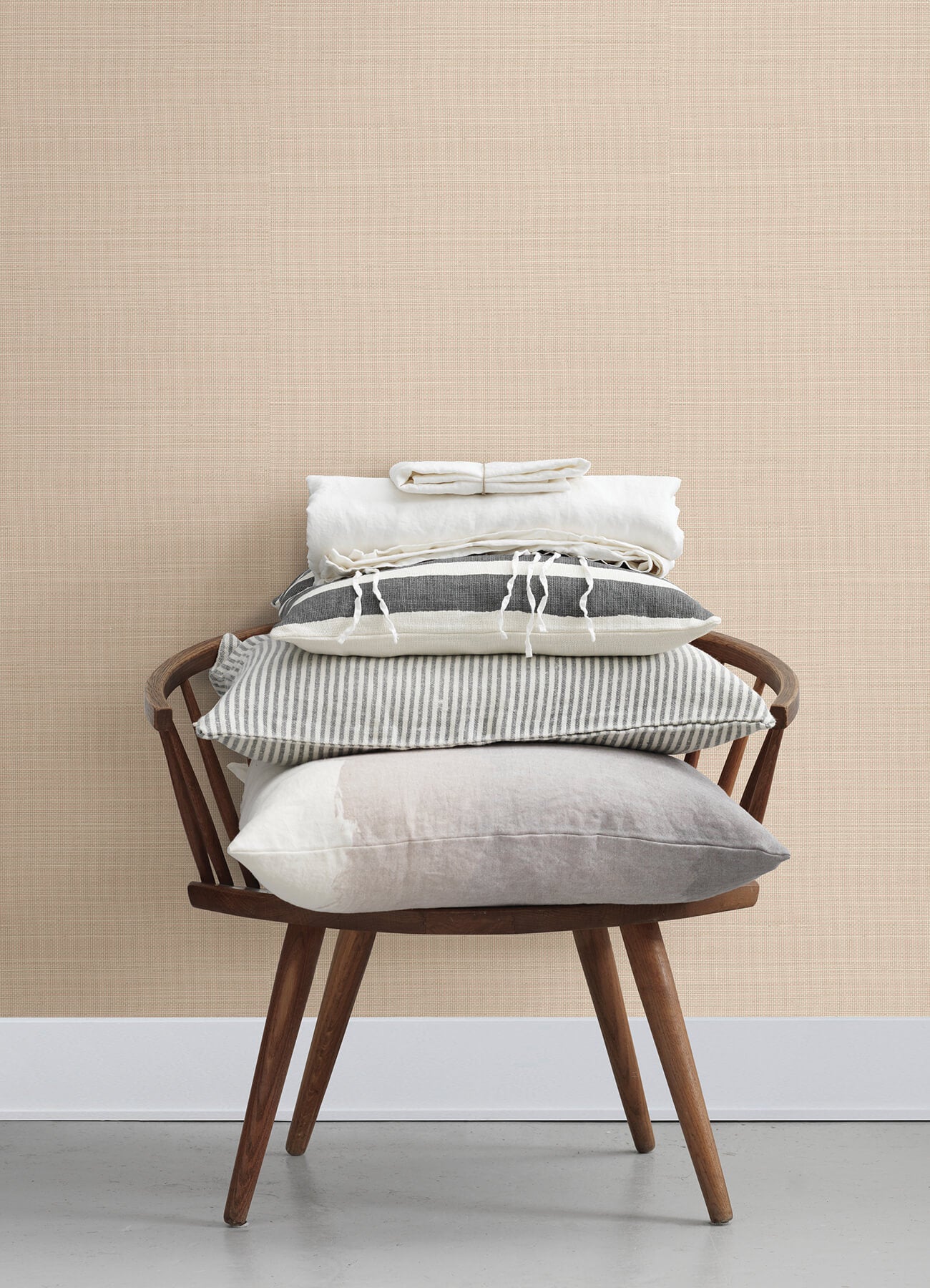 Add warmth and subtle dimension to your walls with this simple wallpaper design. A warm taupe backdrop is overlaid with a fine netting of peachy-pink lines. Spinnaker is a prepasted, sure strip wallpaper. Chesapeake wallpapers are classically beautiful. Each collection centers around a thematic influence, using familiar motifs and versatile prints to capture the essence of styles like coastal chic, French country, rustic charm, and traditional elegance. The high-quality patterns are designed to be enduring and timeless.
