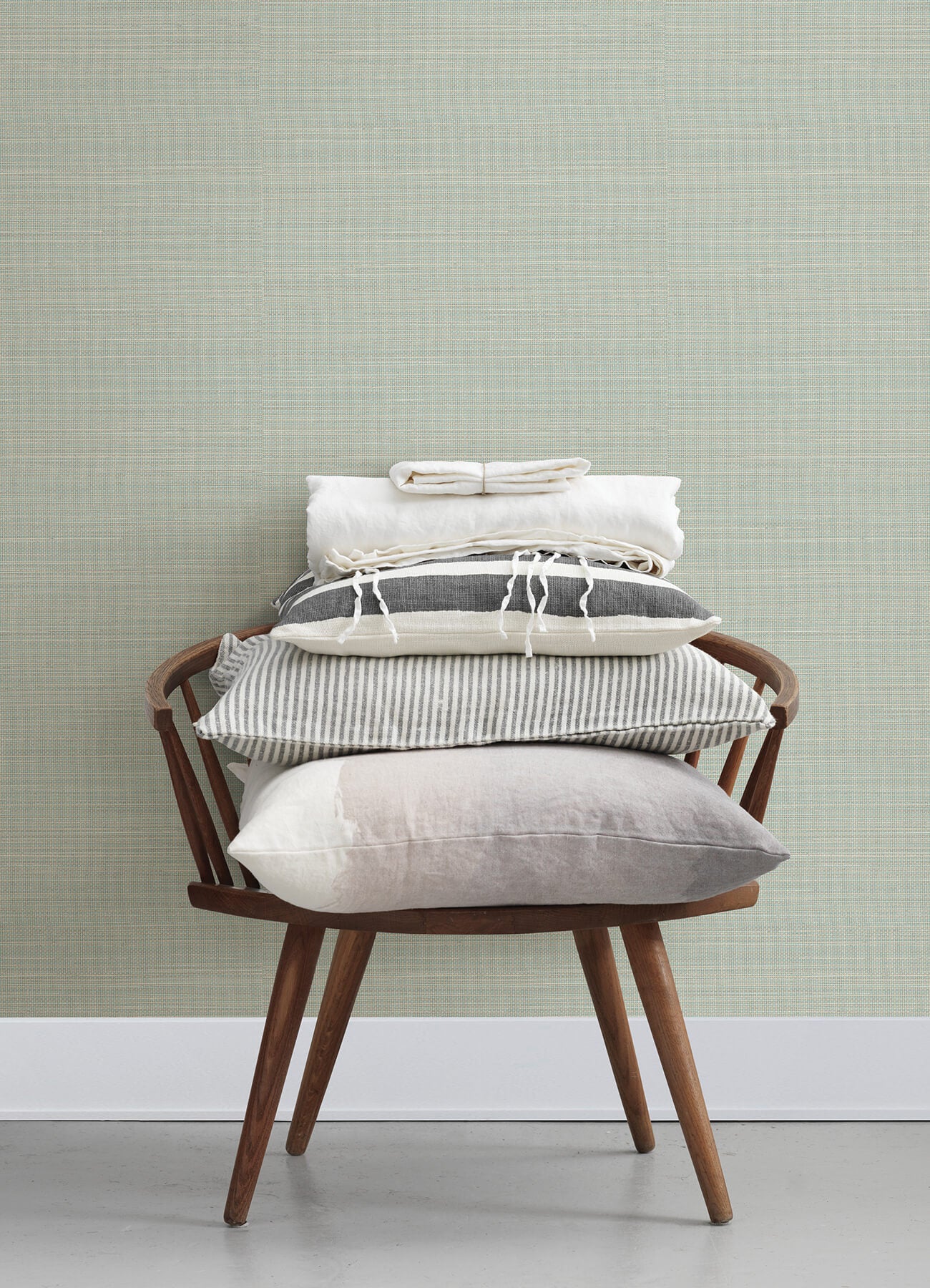 Add subtle depth to your interiors with this simply designed wallpaper. A cool aqua background is overlaid with finely woven white netting. Spinnaker is a prepasted, sure strip wallpaper. Chesapeake wallpapers are classically beautiful. Each collection centers around a thematic influence, using familiar motifs and versatile prints to capture the essence of styles like coastal chic, French country, rustic charm, and traditional elegance. The high-quality patterns are designed to be enduring and timeless.