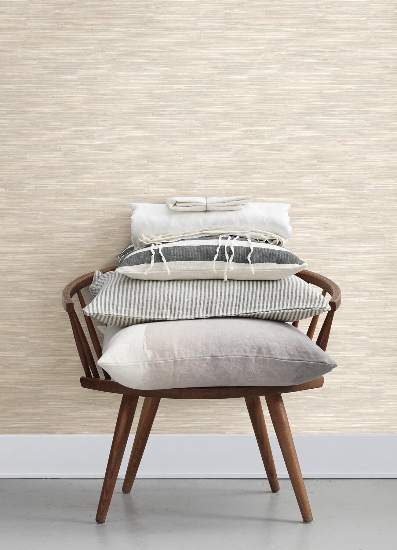 Enjoy the high-end look of grasscloth without the hassle and expense with this design! A blend of peachy-pink, light brown, and white strips feature stitched and knotted detailing to mimic authentic grasscloth. Grassweave is a prepasted, sure strip wallpaper. Chesapeake wallpapers are classically beautiful. Each collection centers around a thematic influence, using familiar motifs and versatile prints to capture the essence of styles like coastal chic, French country, rustic charm, and traditional elegance. The high-quality patterns are designed to be enduring and timeless.