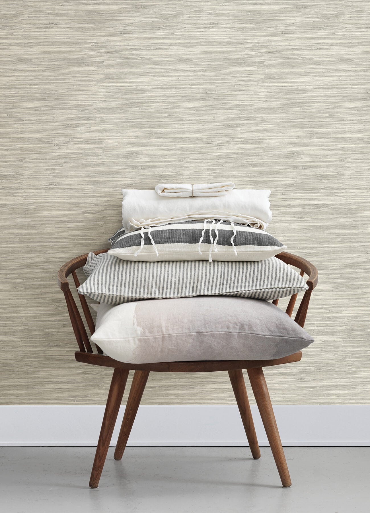 For a high-end look at a fraction of the price, try faux grasscloth wallpaper! This design features a blend of light grey strands accented by knots and stitching that mimics the detailing of authentic grasscloth. Grassweave is a prepasted, sure strip wallpaper. Chesapeake wallpapers are classically beautiful. Each collection centers around a thematic influence, using familiar motifs and versatile prints to capture the essence of styles like coastal chic, French country, rustic charm, and traditional elegance. The high-quality patterns are designed to be enduring and timeless.