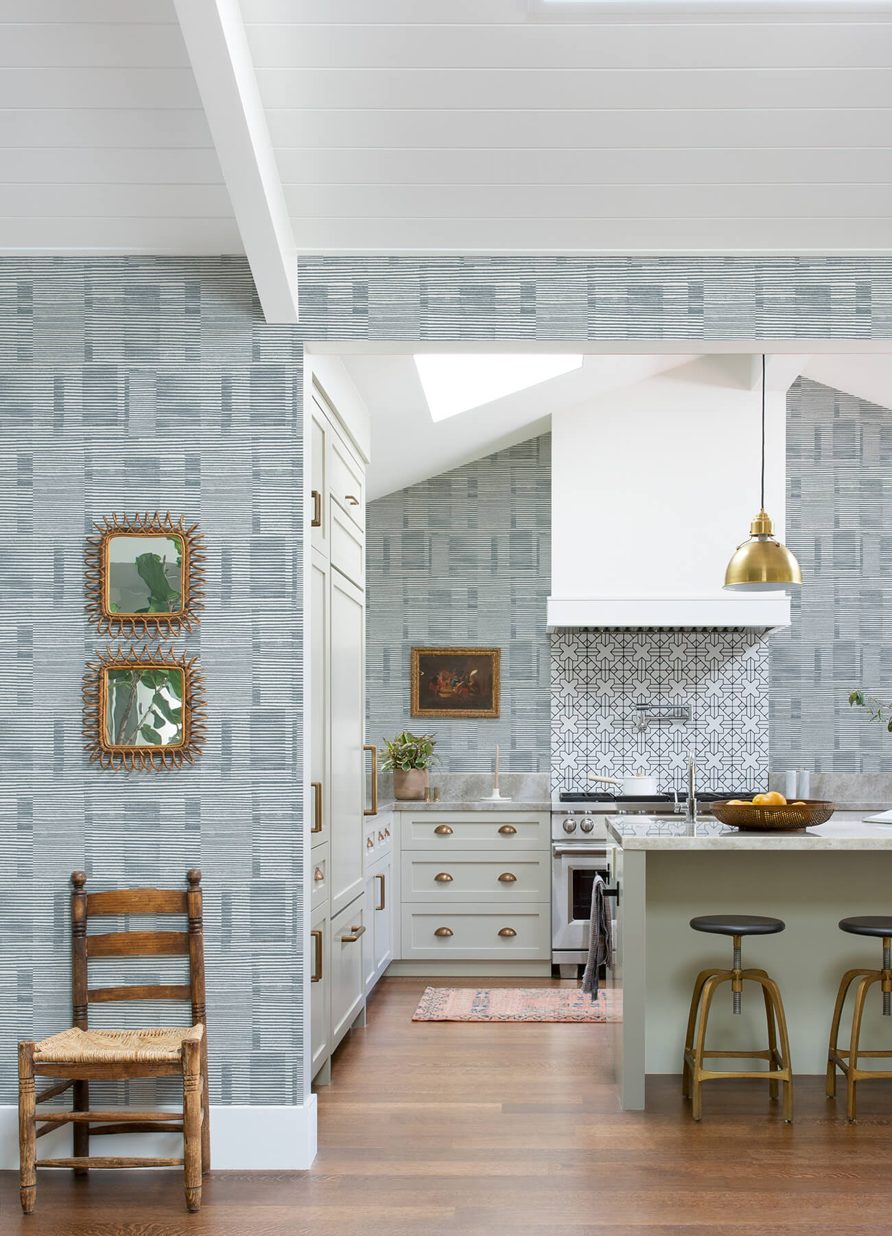 Bring chic dimension to your interiors with this soothing, striped wallpaper. The thin bands of denim blue overlap in places to create an abstract, almost woven tapestry. Callaway is an unpasted, non woven wallpaper. Elevate your home with the subtle colors and warm sophistication of Georgia wallpaper collection by A-Street Prints. Timeless design is revisited and rejuvenated with this assortment of elegant botanical, striking geometric, and complementary textures.
