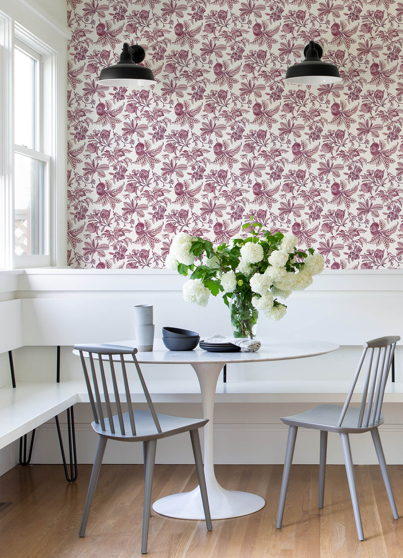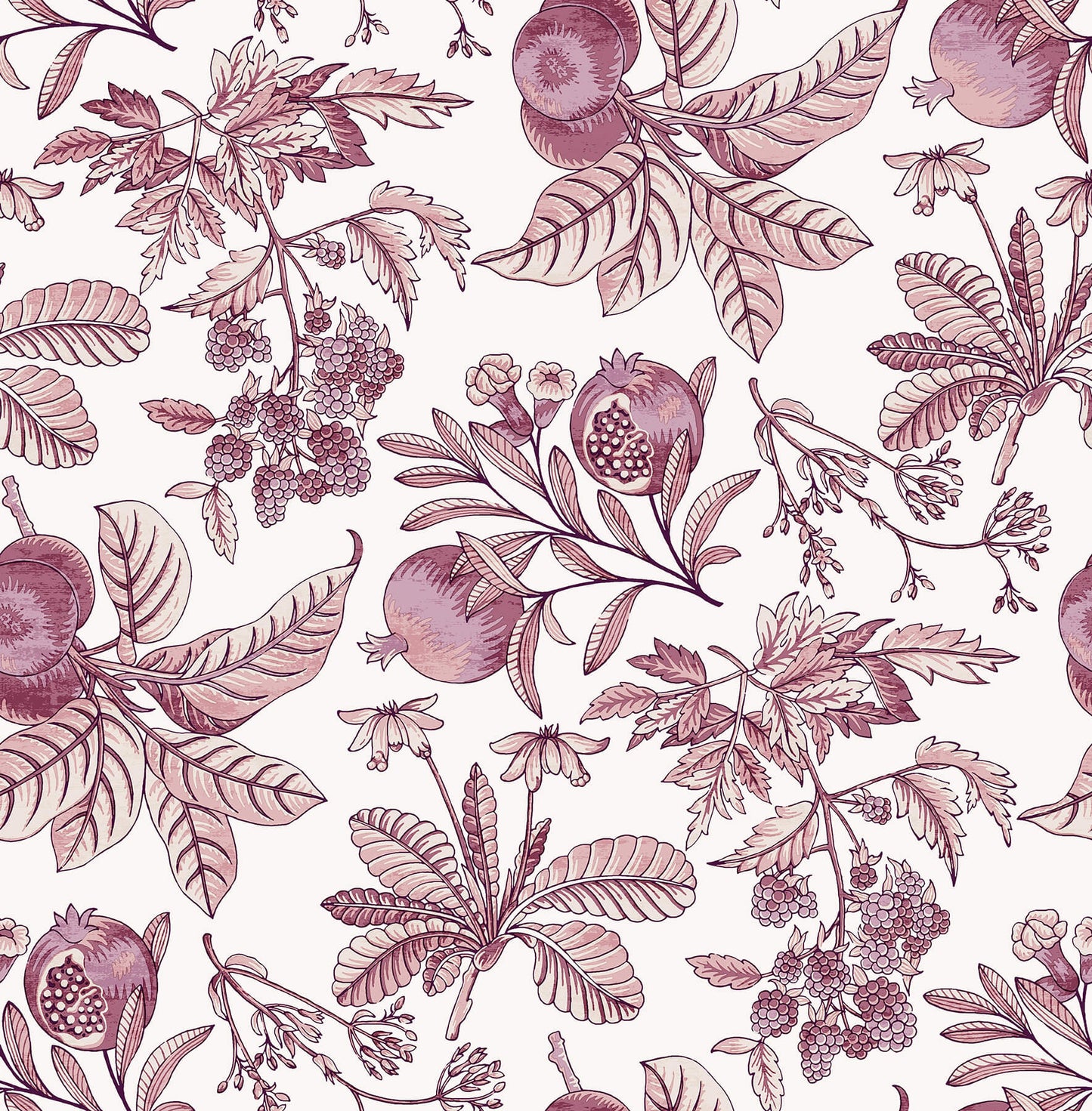 Add color and charm to your walls with this timeless fruit design. Pomegranates and blackberries still ripe on the vine are artistically rendered in shades of purple and taupe, various wildflowers filling out the rest of the space along a bright white backdrop. Cecilia is an unpasted, non woven wallpaper. Enjoy a modernized take on timeless design motifs with Middleton by A-Street Prints. The enduring appeals of chinoiserie, botanical, and geometric wallpaper patterns have been reinvigorated with vibrant hues and artistic styling.