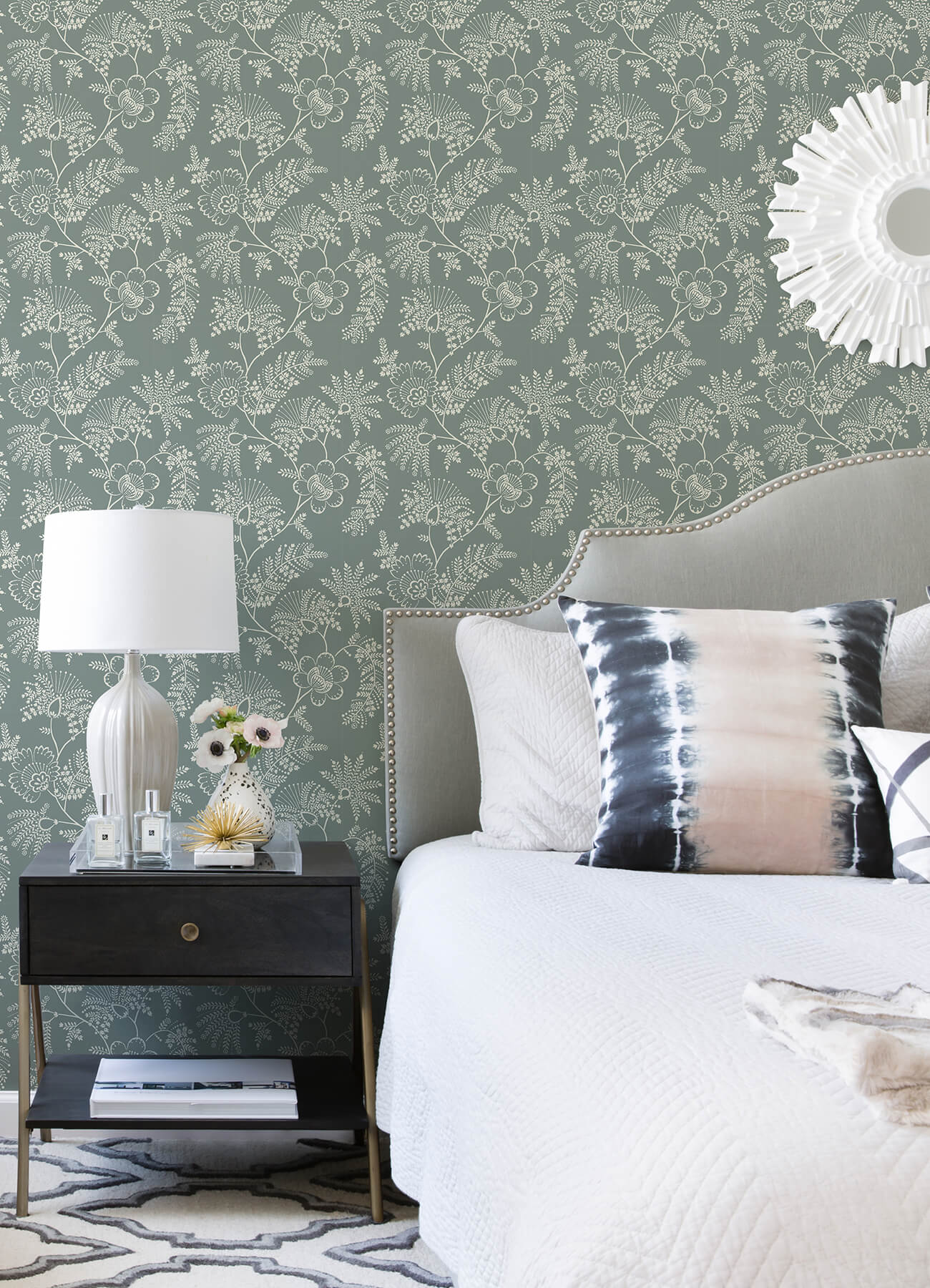 Bring a serene, feminine touch to your interiors with this modern Jacobean wallpaper. The winding floral trails are simply outlined in white against a rich sea green background. Maeve is an unpasted, non woven wallpaper. Enjoy a modernized take on timeless design motifs with Middleton by A-Street Prints. The enduring appeals of chinoiserie, botanical, and geometric wallpaper patterns have been reinvigorated with vibrant hues and artistic styling.