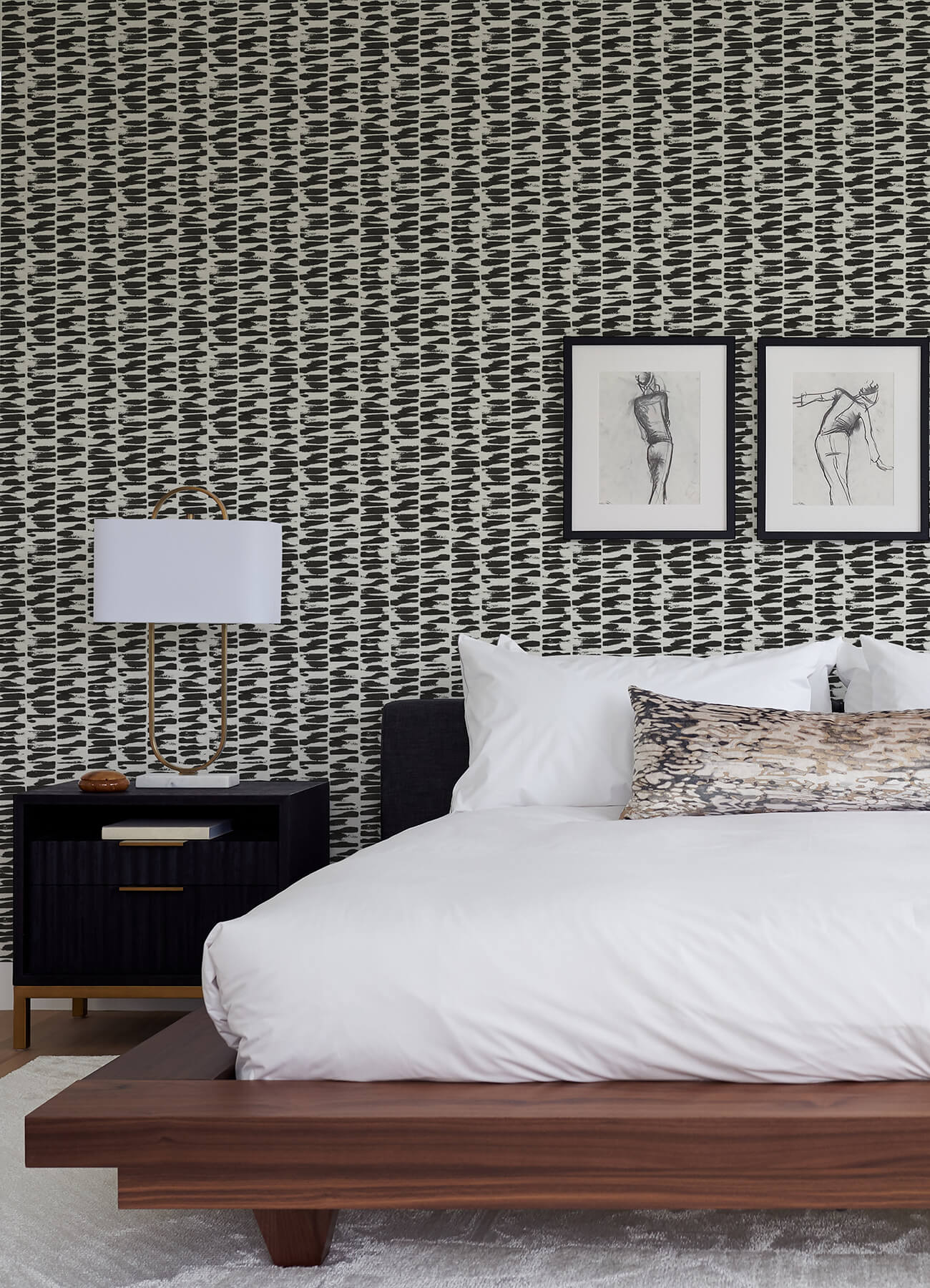 Dynamic and compelling, this modern abstract wallpaper will make an instant impact in your space! The black free-hand brushstrokes form columns along an off-white background, the entire piece elevated by lines of textured, raised ink. Myrtle is an unpasted, non woven wallpaper. Enjoy a modernized take on timeless design motifs with Middleton by A-Street Prints. The enduring appeals of chinoiserie, botanical, and geometric wallpaper patterns have been reinvigorated with vibrant hues and artistic styling.
