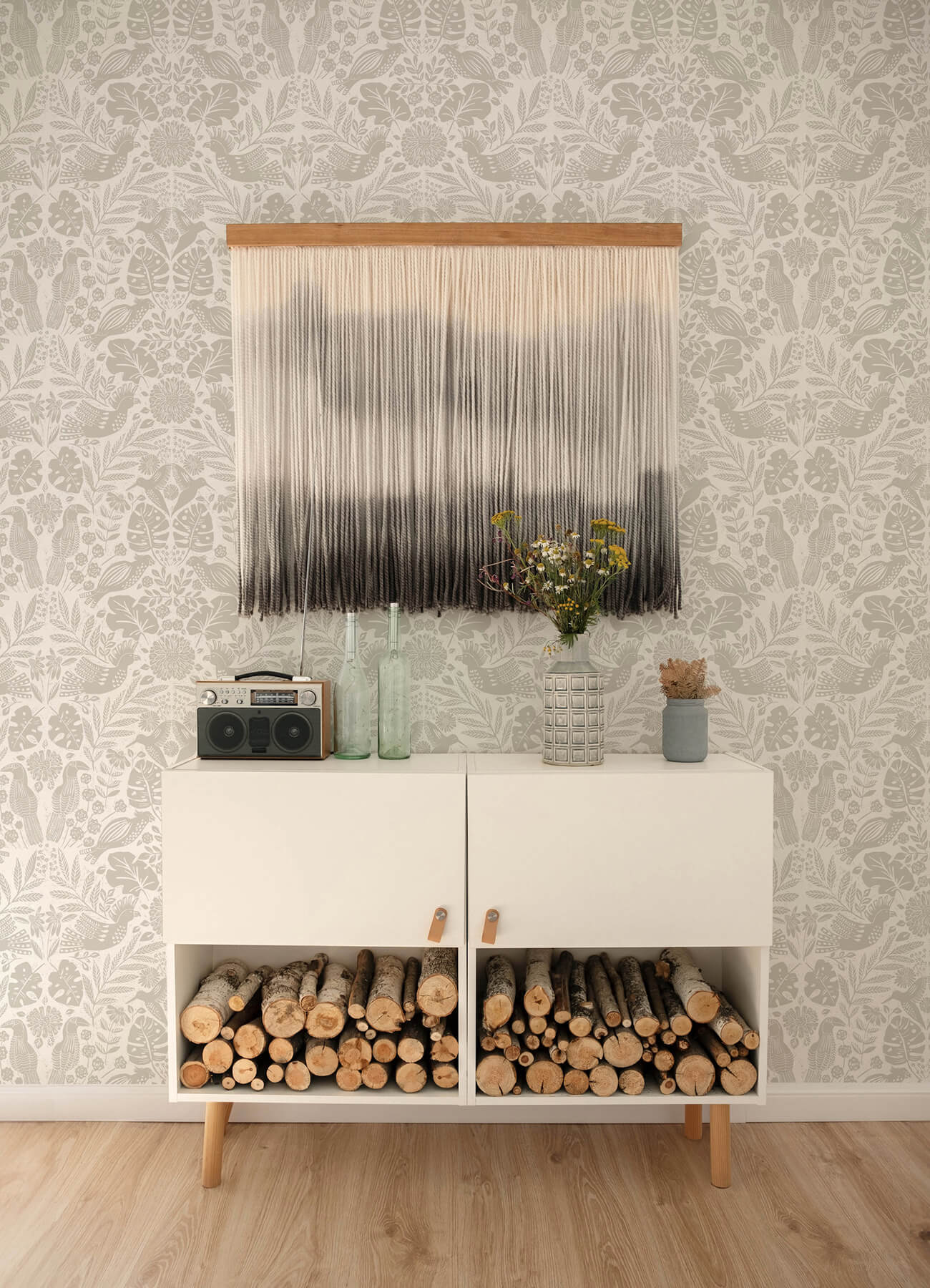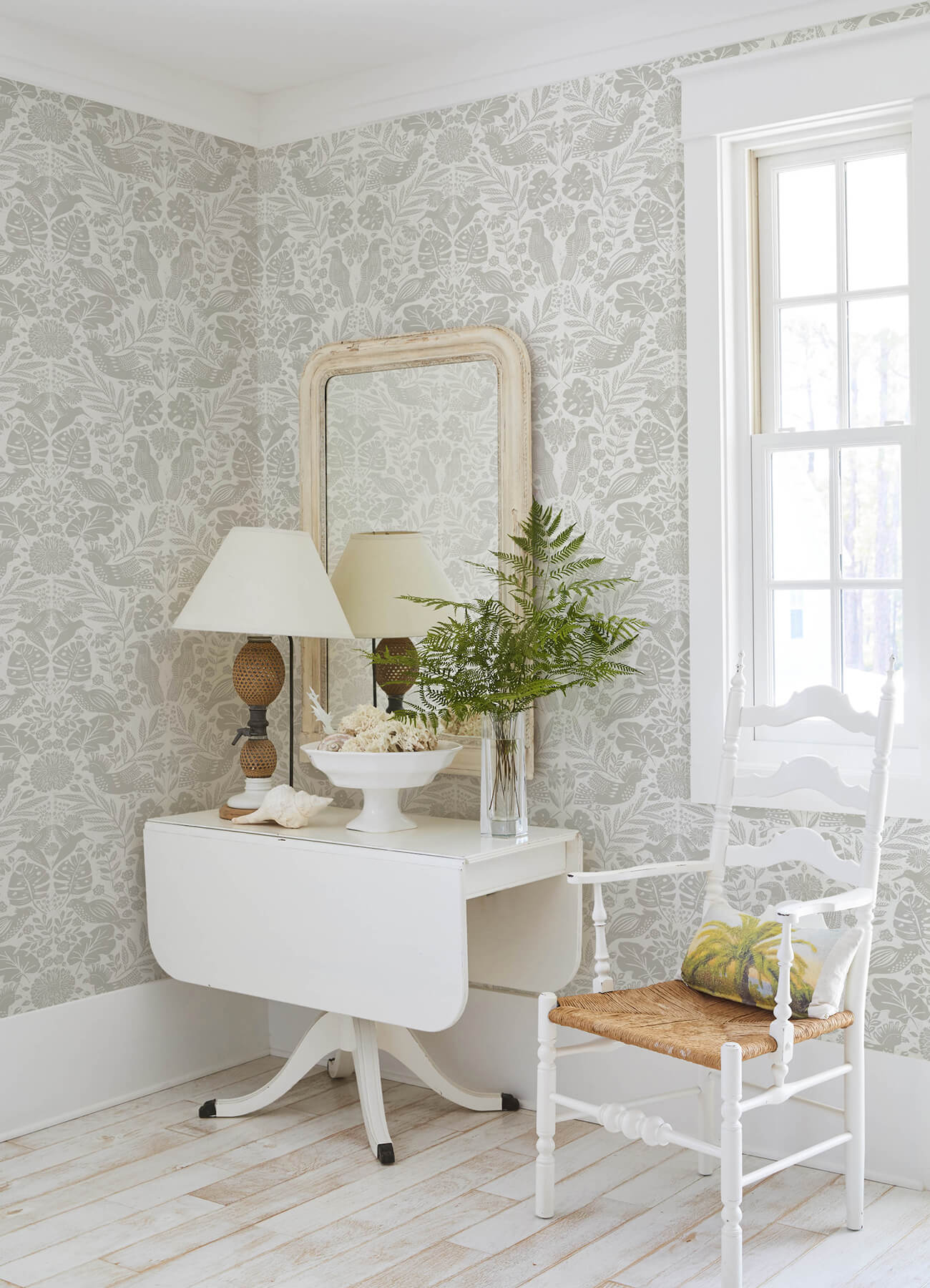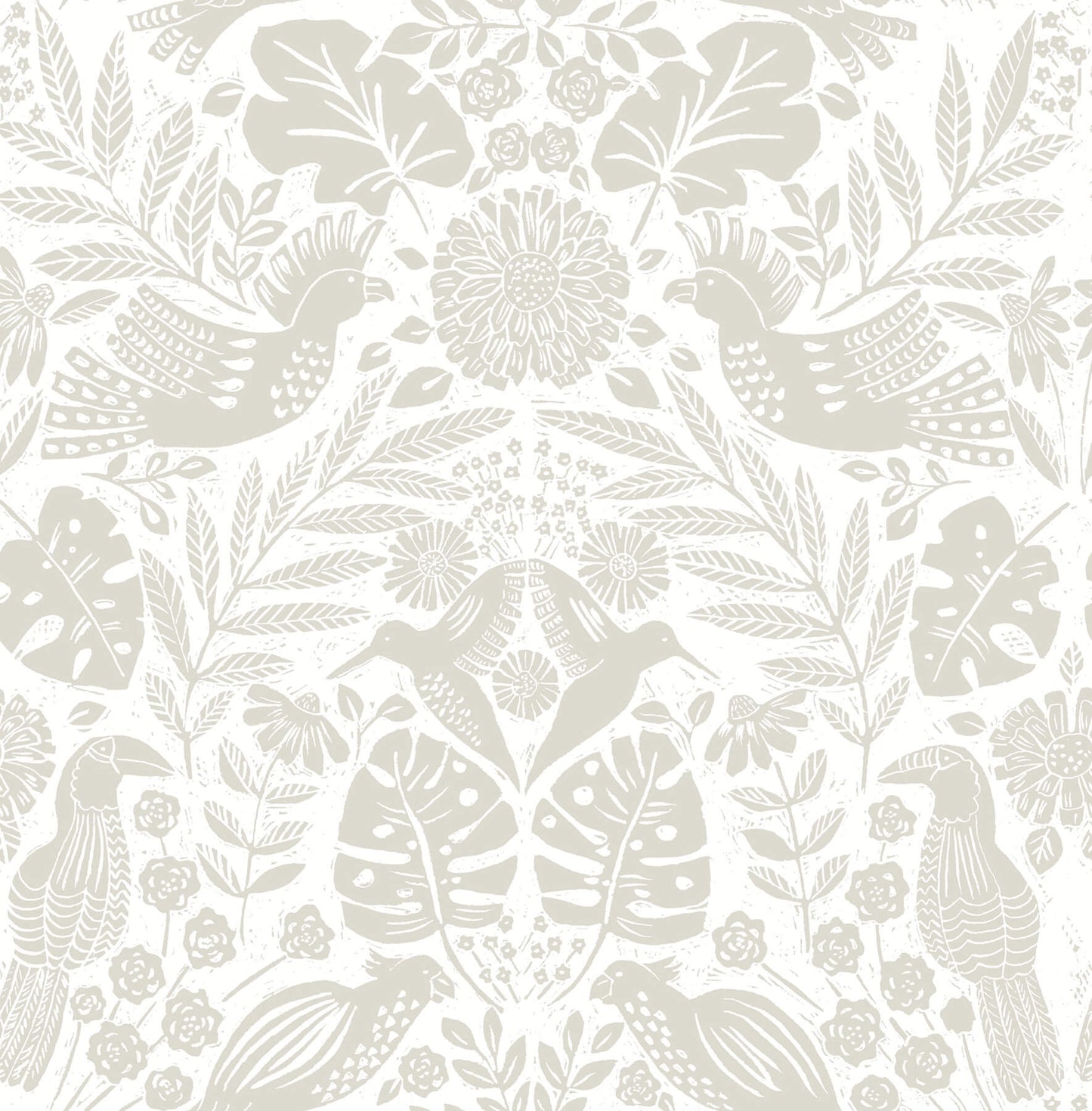 Bird lovers, rejoice! This playful damask wallpaper features a diverse tropical flock roosted amongst lush foliage, the details block printed in light grey against white. Nestle is an unpasted, non woven wallpaper measuring 20.5 inches wide by 33 feet long, covering approximately 56.4 square feet per roll. Terrace by A-Street Prints wallpaper collection is a delightful cultivation of chic, nature inspired designs. This vibrant collection features a bohemian blend of bountiful botanicals, complementary geometrics, and reinvigorated classic patterns.
