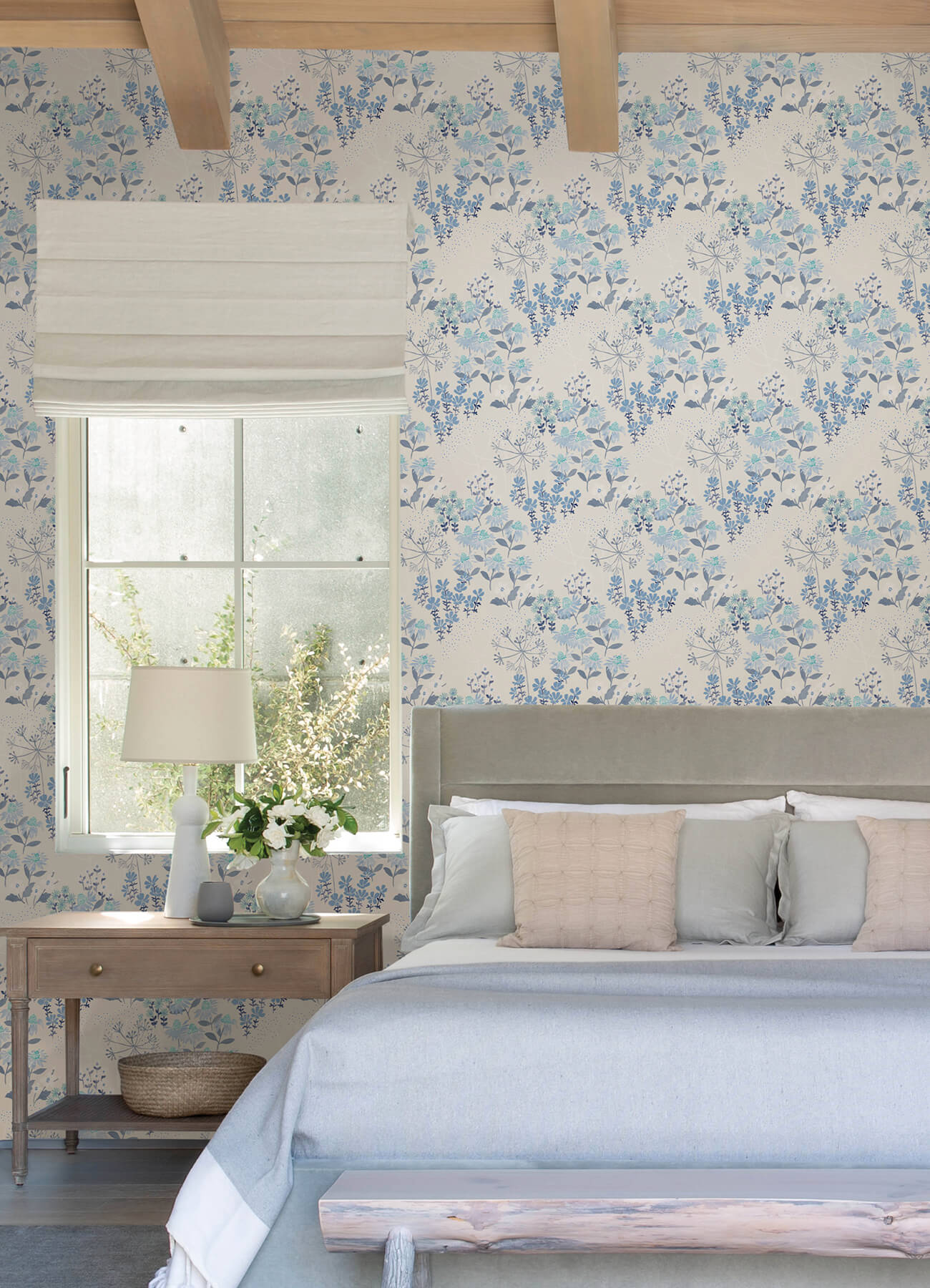 This charming floral wallpaper is a contemporary take on blue and white timelessness. Spring's first blooms are painted in a variety of blues accented by white and framed by a pale grey backdrop. Cultivate is an unpasted, non woven wallpaper measuring 20.5 inches wide by 33 feet long, covering approximately 56.4 square feet per roll. Terrace by A-Street Prints wallpaper collection is a delightful cultivation of chic, nature inspired designs. This vibrant collection features a bohemian blend of bountiful botanicals, complementary geometrics, and reinvigorated classic patterns.