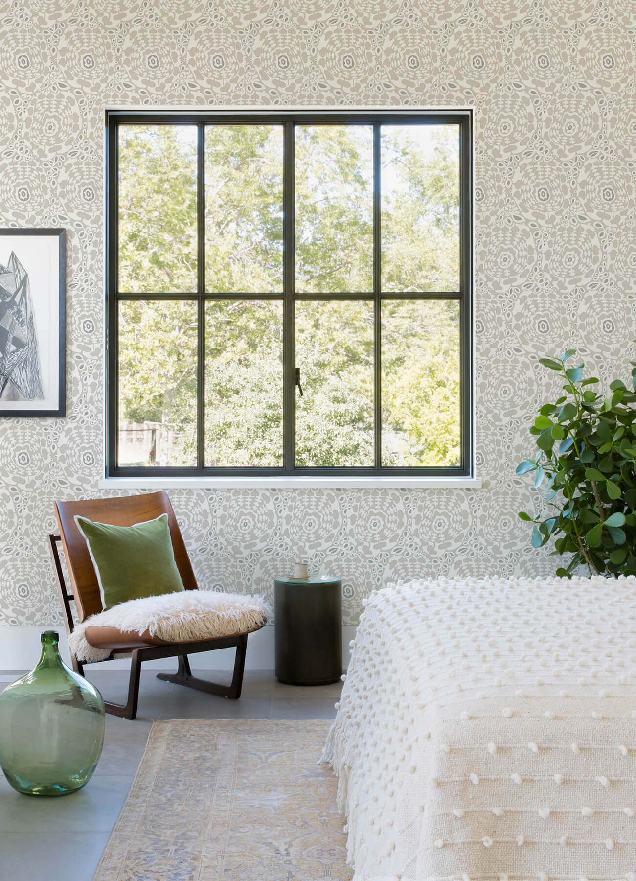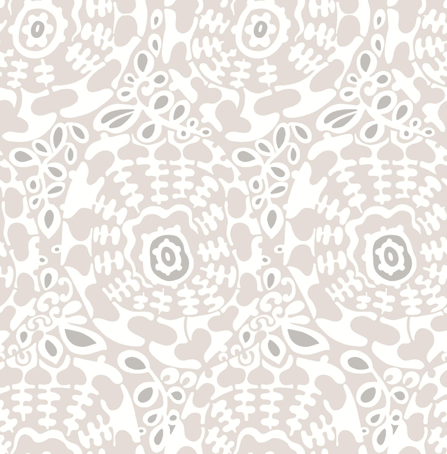 Make a statement, and make it playful with this whimsical grey wallpaper. Abstract floral medallions ebb and flow into one another, with viny tendrils connection each section. Divine is an unpasted, non woven wallpaper measuring 20.5 inches wide by 33 feet long, covering approximately 56.4 square feet per roll. Terrace by A-Street Prints wallpaper collection is a delightful cultivation of chic, nature inspired designs. This vibrant collection features a bohemian blend of bountiful botanicals, complementary geometrics, and reinvigorated classic patterns.