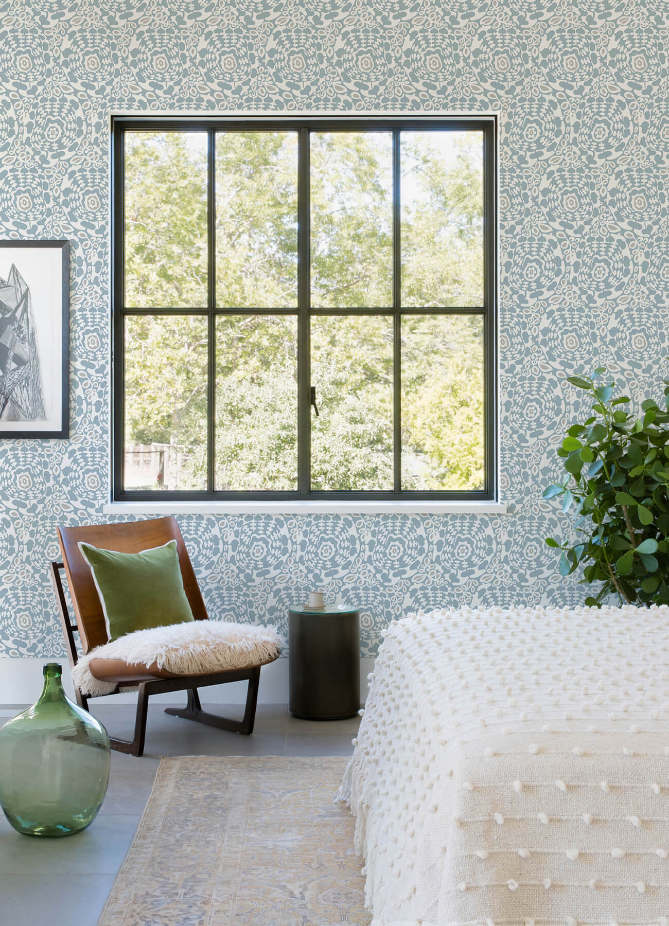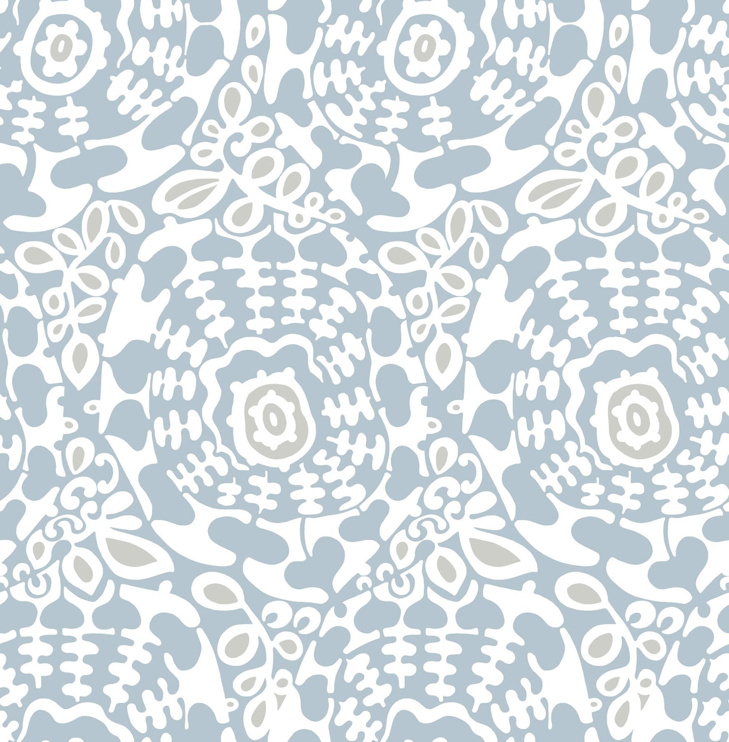 A soothing color palette meets an energizing, abstract design in this modern wallpaper. Floral medallions with impressionistic flair are printed in a soothing combo of sky blue and white, with grey botanical accents throughout. Divine is an unpasted, non woven wallpaper measuring 20.5 inches wide by 33 feet long, covering approximately 56.4 square feet per roll. Terrace by A-Street Prints wallpaper collection is a delightful cultivation of chic, nature inspired designs. This vibrant collection features a bohemian blend of bountiful botanicals, complementary geometrics, and reinvigorated classic patterns.