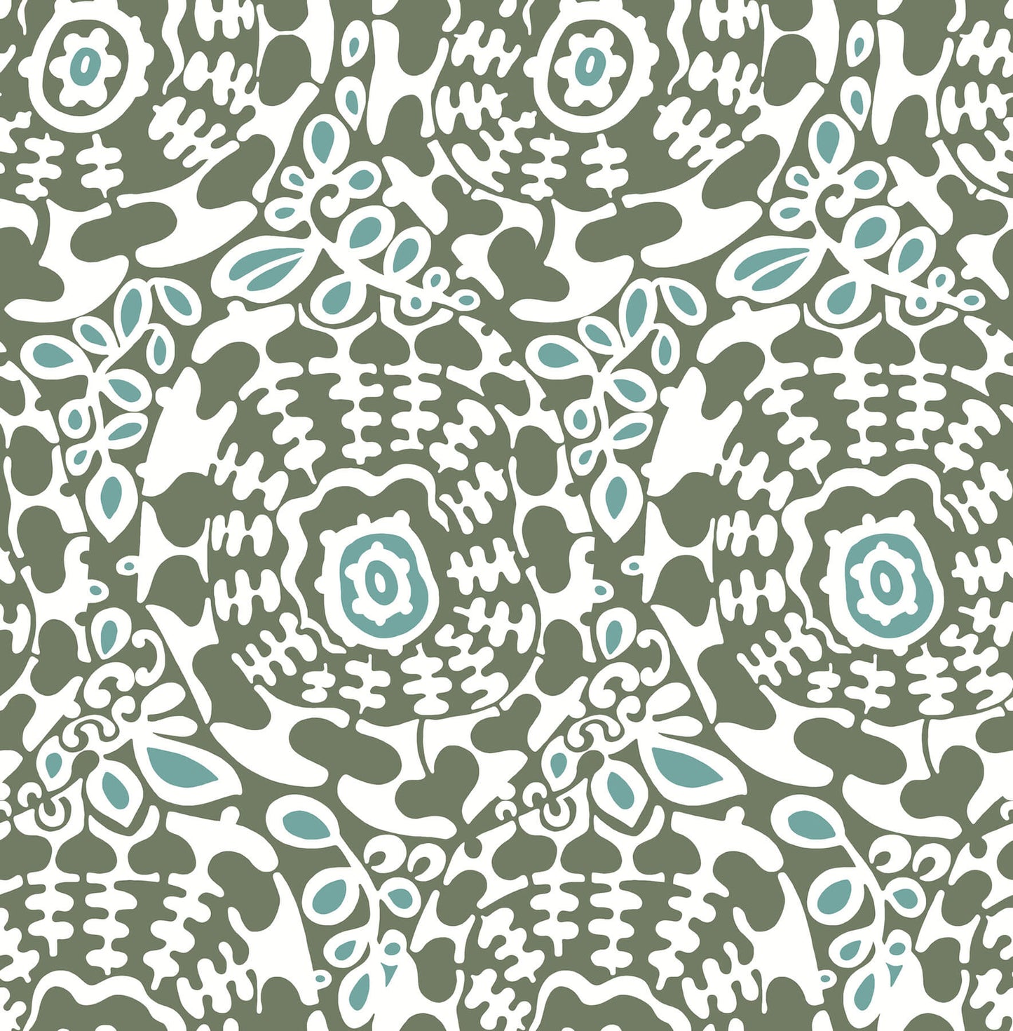 Moody and striking, this abstract wallpaper brings statement-making style to your interiors. The impressionistic floral medallions are shaped by white and hunter green segments, with turquoise botanical accents adding a touch of brightness to the design. Divine is an unpasted, non woven wallpaper measuring 20.5 inches wide by 33 feet long, covering approximately 56.4 square feet per roll. Terrace by A-Street Prints wallpaper collection is a delightful cultivation of chic, nature inspired designs. This vibrant collection features a bohemian blend of bountiful botanicals, complementary geometrics, and reinvigorated classic patterns.