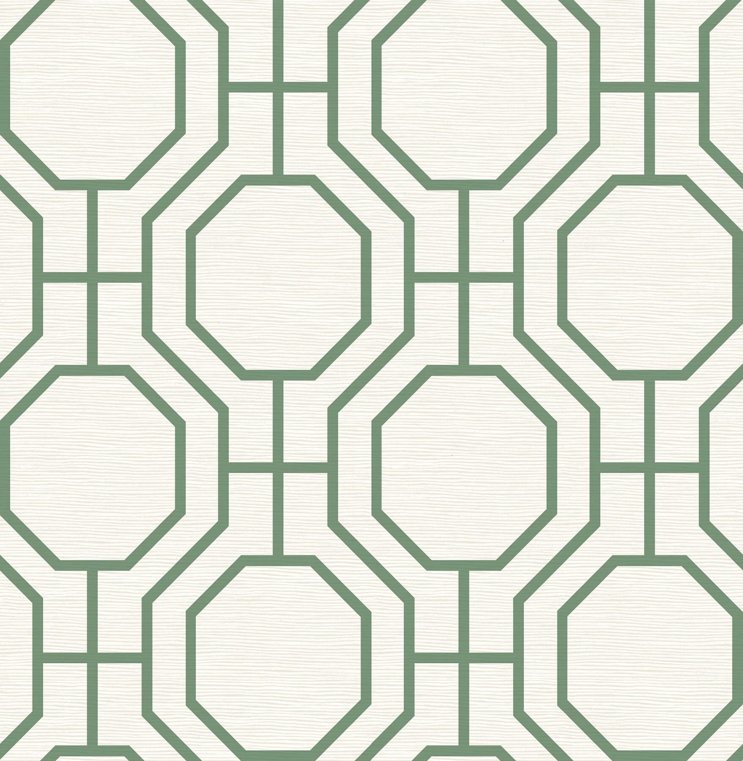 Enjoy a modern revitalization of trellis design with this wallpaper. The vibrant green gridwork features octagonal detailing, offset by a cream faux grasscloth background with tactile finishes. Manor is an unpasted, non woven wallpaper measuring 20.5 inches wide by 33 feet long, covering approximately 56.4 square feet per roll. Terrace by A-Street Prints wallpaper collection is a delightful cultivation of chic, nature inspired designs. This vibrant collection features a bohemian blend of bountiful botanicals, complementary geometrics, and reinvigorated classic patterns.