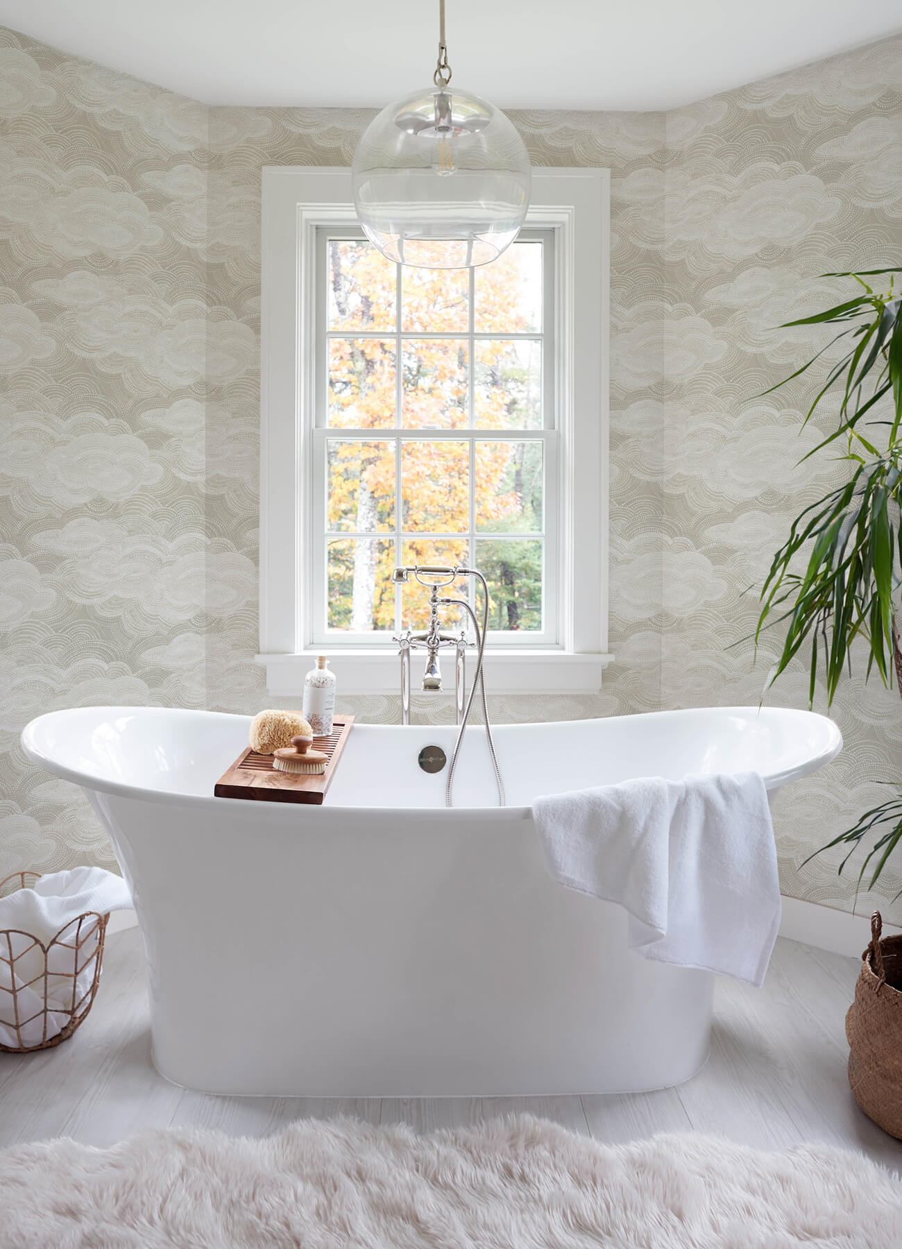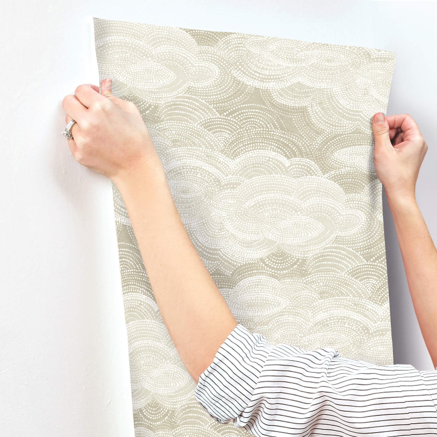 Enjoy having your head in the clouds with this ethereal wallpaper! A pearlescent dove backdrop is accentuated with fluffy, white clouds formed from elaborate dot work. Vision is an unpasted, non woven wallpaper measuring 27 inches wide by 27 feet long, covering approximately 60.8 square feet per roll. Terrace by A-Street Prints wallpaper collection is a delightful cultivation of chic, nature inspired designs. This vibrant collection features a bohemian blend of bountiful botanicals, complementary geometrics, and reinvigorated classic patterns.