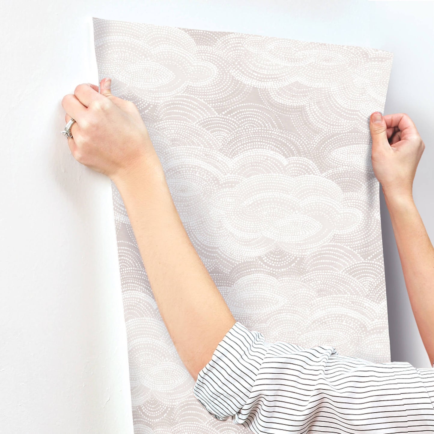 Ethereal and artistic, this cloud wallpaper is a dream come true! A backdrop painted with several soft purple hues is overlaid with fluffy white clouds formed from elaborate dotted detailing. Vision is an unpasted, non woven wallpaper measuring 27 inches wide by 27 feet long, covering approximately 60.8 square feet per roll. Terrace by A-Street Prints wallpaper collection is a delightful cultivation of chic, nature inspired designs. This vibrant collection features a bohemian blend of bountiful botanicals, complementary geometrics, and reinvigorated classic patterns.