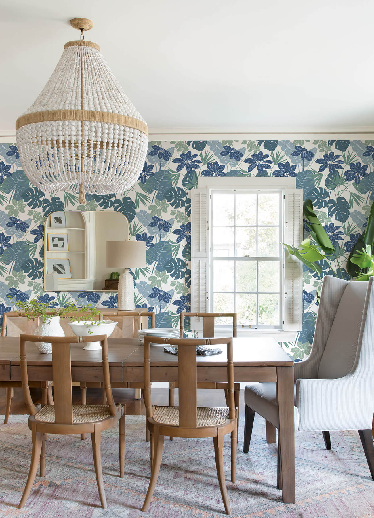 Design your own tropical retreat with this lush botanical wallpaper. Silhouettes of rainforest plant life are painted in shades of blue, teal, and jade against a white backdrop. Medellin is an unpasted, non woven wallpaper measuring 27 inches wide by 27 feet long, covering approximately 60.8 square feet per roll. Terrace by A-Street Prints wallpaper collection is a delightful cultivation of chic, nature inspired designs. This vibrant collection features a bohemian blend of bountiful botanicals, complementary geometrics, and reinvigorated classic patterns.