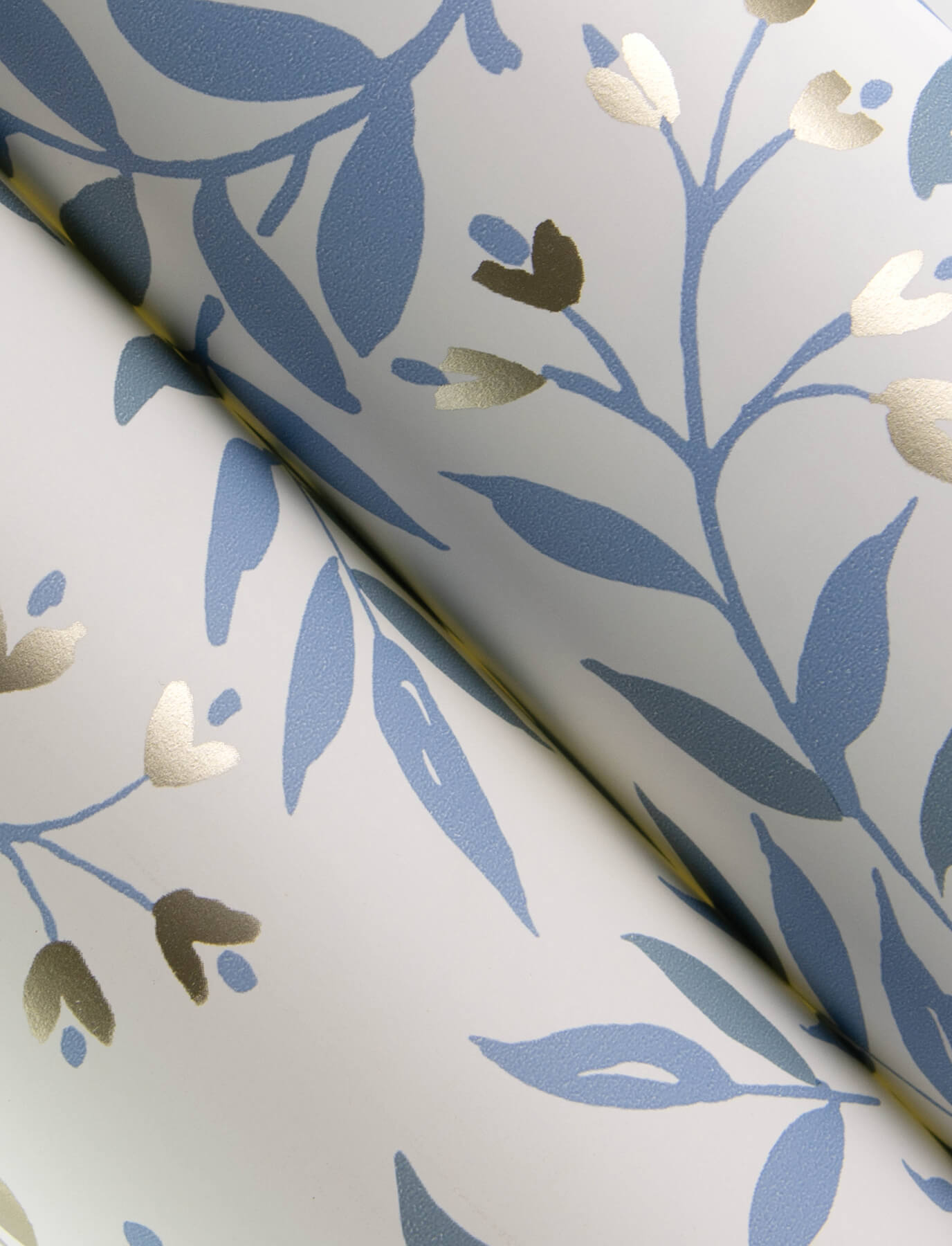 This romantic botanical design features swaying, light blue vines dotted with budding metallic gold flowers, all offset against a white backdrop. Senna is a prepasted, sure strip wallpaper measuring 20.5 inches wide by 33 feet long, covering approximately 56.4 square feet per roll. Inspired by the charming ambiance of herb filled gardens, Chesapeake Wildflower wallpaper collection features elegant botanical patterns, old world architectural motifs, and other vintage touches.