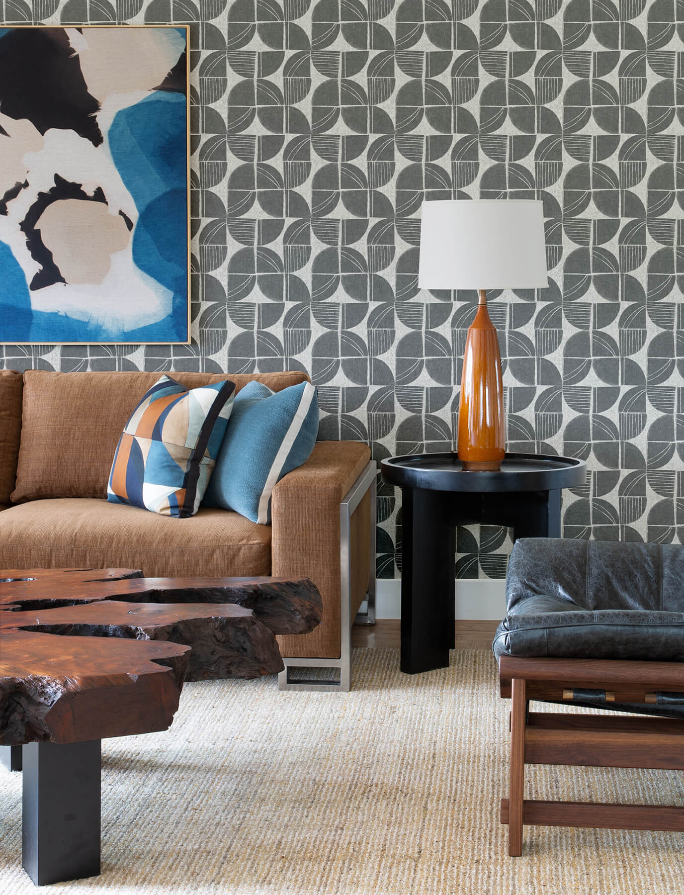 This geometric wallpaper offers an elevated take on rustic ambiance, with embellished charcoal grey semicircles tiled against an off-white cement textured backdrop. Baxter is an unpasted, non woven wallpaper measuring 20.5 inches wide by 33 feet long, covering approximately 56.4 square feet per roll. Soothing and organic, Solace by A-Street Prints brings the tranquility of nature to your interiors. This wallpaper collection features a series of textural, free flowing forms in a curated palette of soft, earthy hues.