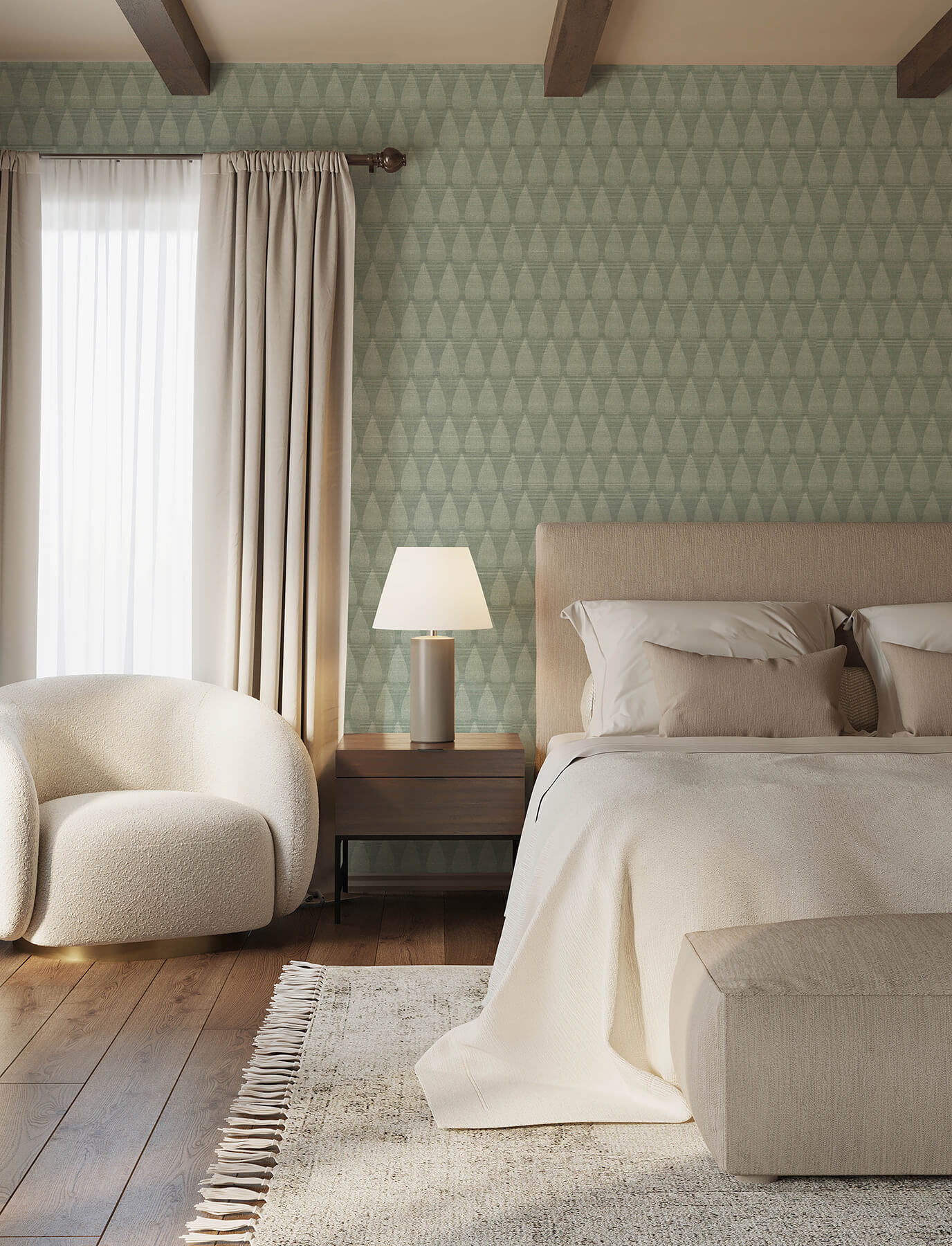 This sleek and modern ogee wallpaper features teardrop scales, soothing sage tones, and textural striping. Mirko is an unpasted, non woven wallpaper measuring 20.5 inches wide by 33 feet long, covering approximately 56.4 square feet per roll. Soothing and organic, Solace by A-Street Prints brings the tranquility of nature to your interiors. This wallpaper collection features a series of textural, free flowing forms in a curated palette of soft, earthy hues.