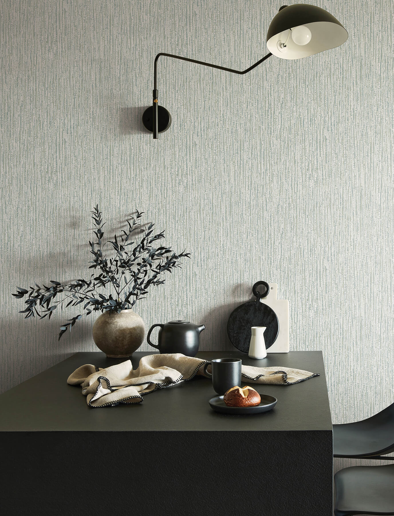The layers of beaded strands in this modern wallpaper create a dimensional backdrop for your home. Each strand is composed of a singular color, the petite beads colored in an array of grey hues accented with sage and white. Corliss is an unpasted, non woven wallpaper measuring 20.5 inches wide by 33 feet long, covering approximately 56.4 square feet per roll. Soothing and organic, Solace by A-Street Prints brings the tranquility of nature to your interiors. This wallpaper collection features a series of textural, free flowing forms in a curated palette of soft, earthy hues.
