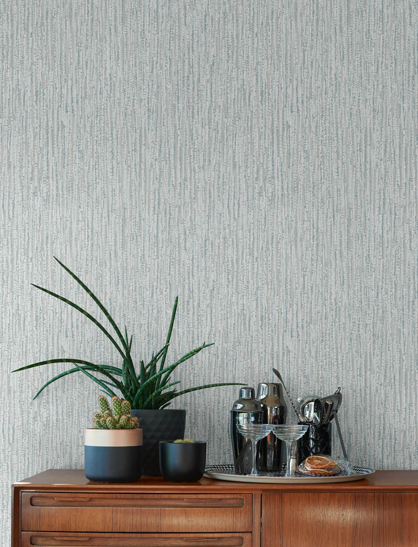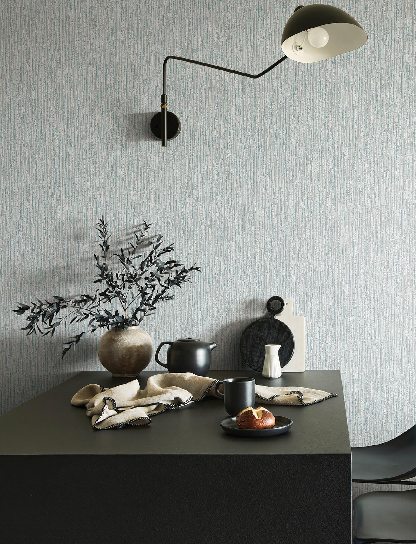 The layers of beaded strands in this modern wallpaper create a dimensional backdrop for your home. Each strand is composed of a singular color, the petite beads colored teal, light blue, light grey, and white. Corliss is an unpasted, non woven wallpaper measuring 20.5 inches wide by 33 feet long, covering approximately 56.4 square feet per roll. Soothing and organic, Solace by A-Street Prints brings the tranquility of nature to your interiors. This wallpaper collection features a series of textural, free flowing forms in a curated palette of soft, earthy hues.