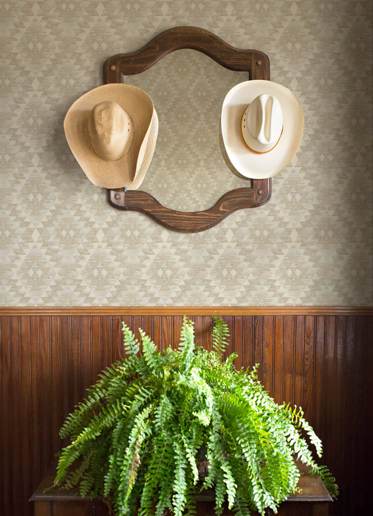 The picture of rugged comfort, this wallpaper perfectly captures the look of a hand-loomed blanket. Simply embellished with a western-inspired geometric design inked in shades of beige, blue-grey, and white, this wallpaper brings lived-in charm to your home. Montana is a prepasted, non woven wallpaper measuring 20.5 inches wide by 33 feet long, covering approximately About 56.4 square feet square feet per roll. Celebrate the rugged, yet sophisticated and fierce beauty of America's frontier lands with Yellowstone by Chesapeake. This wallpaper collection captures the hit Paramount Network series indomitable spirit through a variety of enduring, western designs.