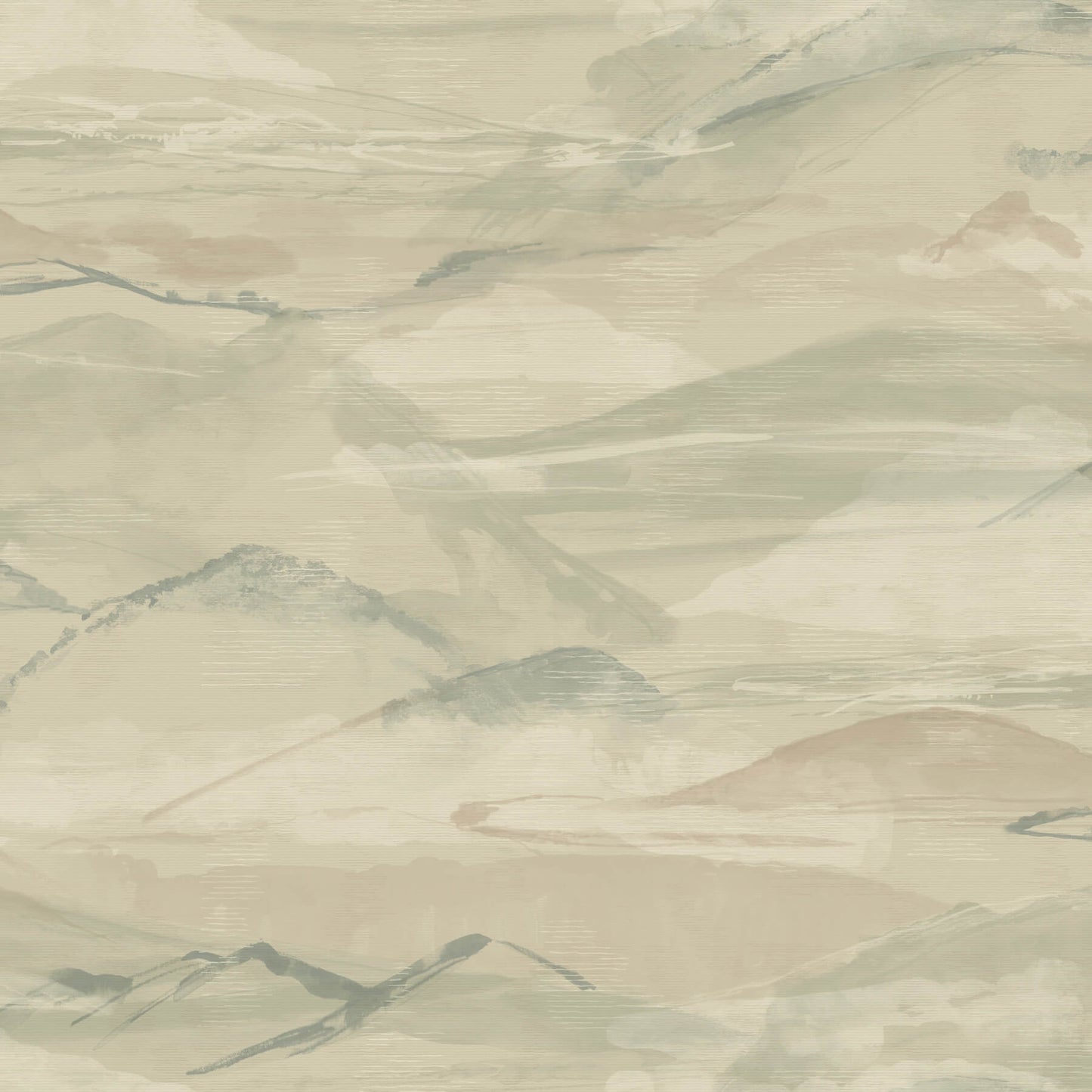This hallmark of the iconic Montana landscape is artistically recreated on wallpaper. The illustrative design features a restricted palette of pale green, blue, and taupe, soft watercolor forms, and the feeling of mist drifting over the mountain range. Bozeman Mountains is a prepasted, non woven wallpaper measuring 20.5 inches wide by 33 feet long, covering approximately About 56.4 square feet square feet per roll. Celebrate the rugged, yet sophisticated and fierce beauty of America's frontier lands with Yellowstone by Chesapeake. This wallpaper collection captures the hit Paramount Network series indomitable spirit through a variety of enduring, western designs.
