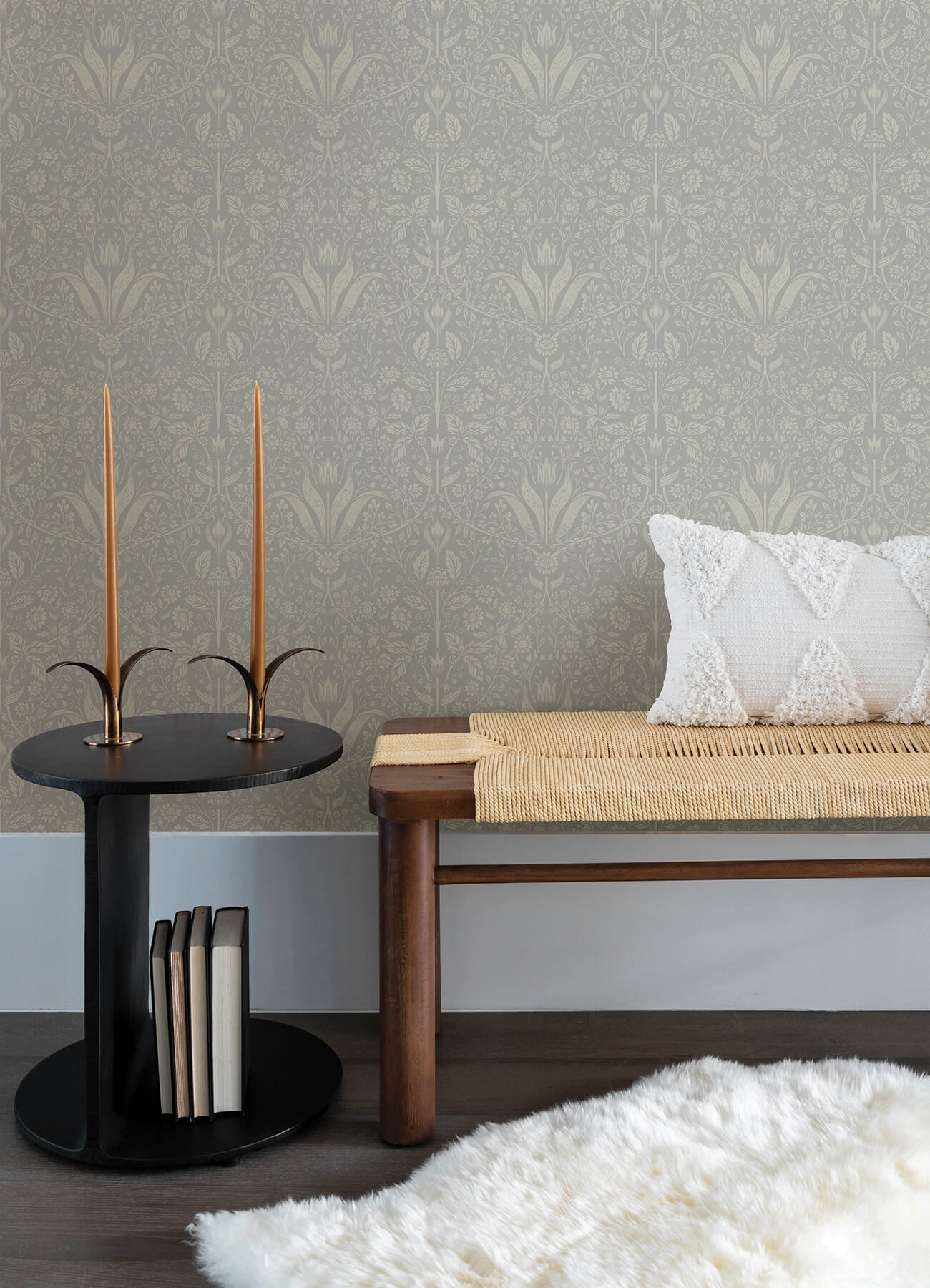 A-Street Prints Botanica Mara Tulip Ogee Wallpaper - Grey