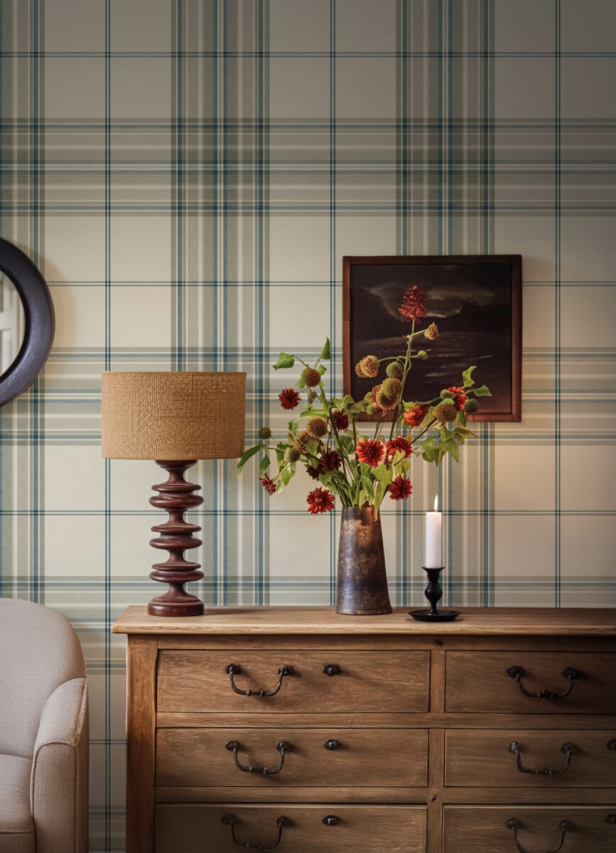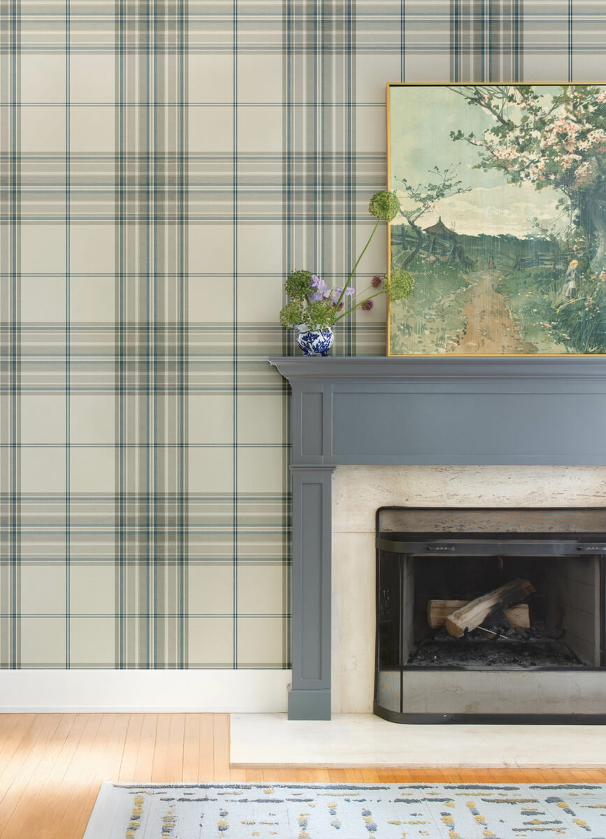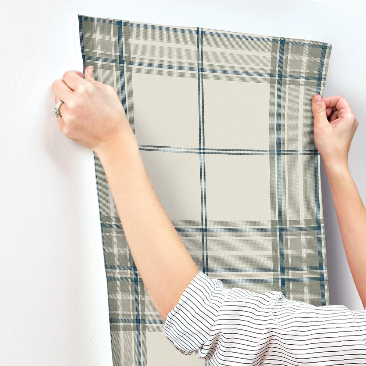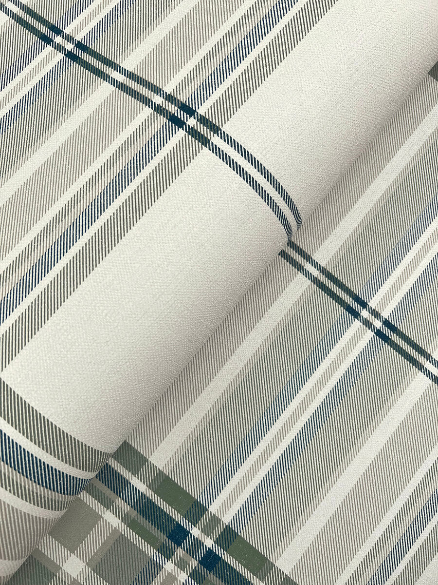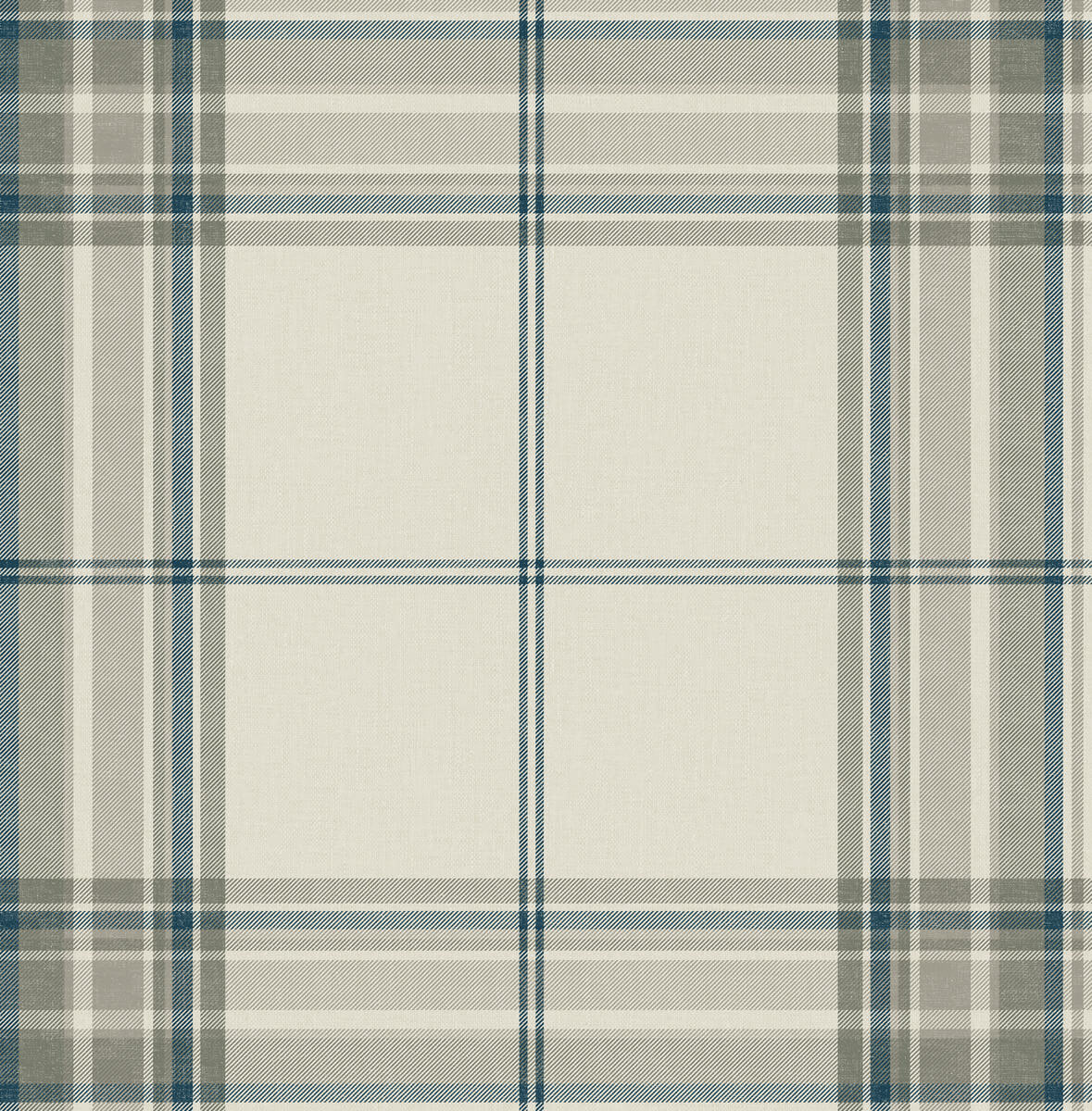 Plaid's comforting and classic sophistication is reimagined with a grand scale and playful palette. Seen here with rich blue, moss, and grey accents against a cream foundation. Westley is an unpasted, non woven wallpaper measuring 20.5 inches wide by 33 feet long, covering approximately 56.4 square feet per roll. Haberdashery by A-Street Prints re-imagines classic design with a modern twist. This stylish collection features timeless textile patterns, elegant geometrics, and lush botanicals, all enriched with warm and inviting color palettes.