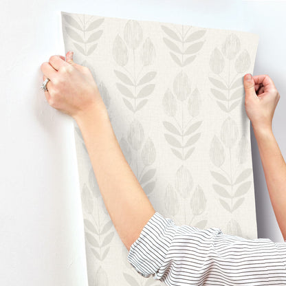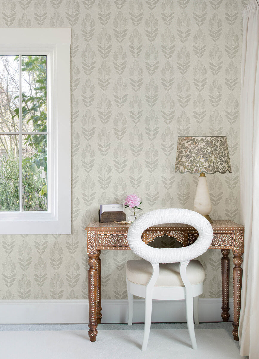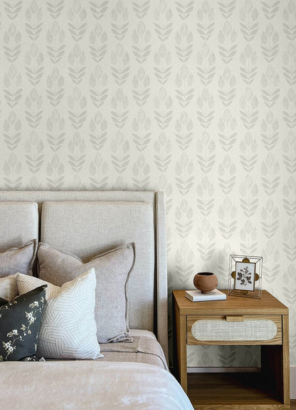 Chesapeake Printworks Garland Tulip Wallpaper - Light Gray