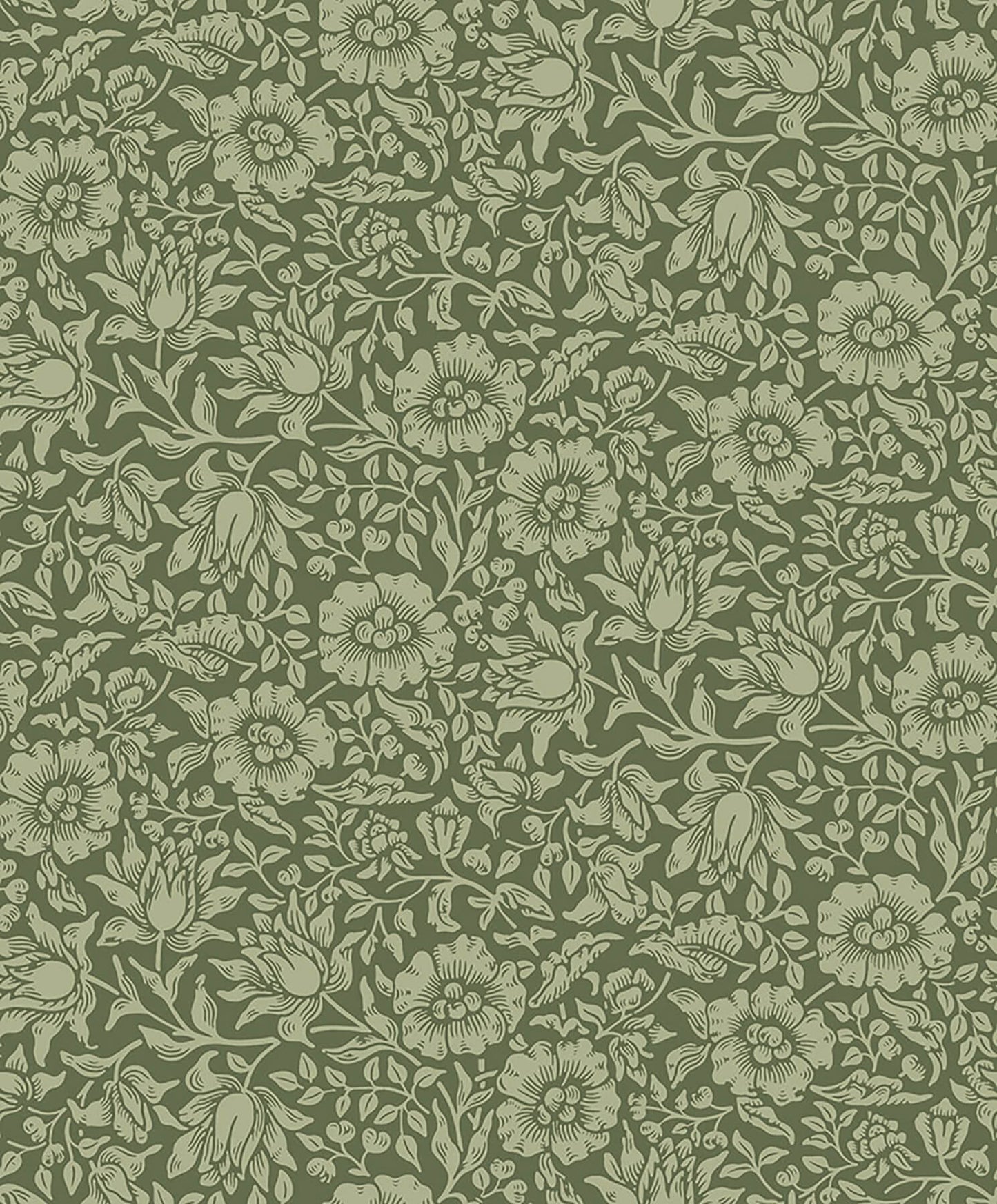 This mesmerizing pattern was first conceived in 1879 and its intertwined foliage continues to captivate to this day. Mallow's simple design and rich green palette adds elegance to any interior. Mallow is an unpasted, non woven wallpaper measuring 20.9 inches wide by 33 feet long, covering approximately 57.5 square feet per roll. Celebrating Morris' lifelong love of nature, the Hidden Treasures wallpaper collection does much more than amplify echoes from the past. It transforms them into elegant interior design classics that add distinct character to the walls of any home. Although it's well over 100 years since he passed, iconic English designer William Morris continues to have a profound influence on contemporary design. With Hidden Treasures, a series of previously unseen Morris sketches have been faithfully recreated by acclaimed Swedish designer Björn Nilsson.