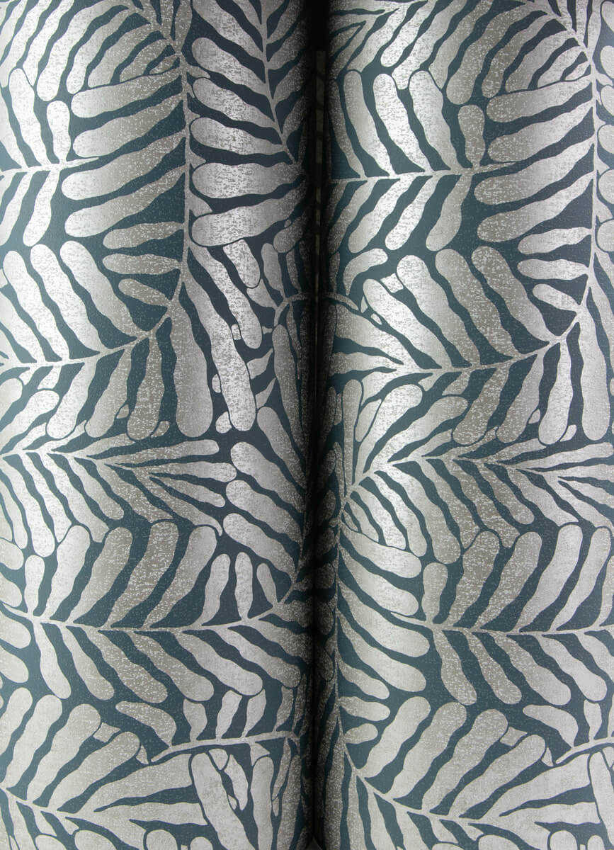 Dense spirals of woodland ferns are bathed in a metallic glow in this sophisticated botanical print. Seen here with sterling leaves set against a dark teal backdrop. Gabriel is an unpasted, non woven wallpaper measuring 20.5 inches wide by 33 feet long, covering approximately About 56.4 square feet square feet per roll. In its fourth wallpaper collection, Drew & Jonathan Home celebrates the signature casual and refined style of Drew & Jonathan Scott who help you re-imagine what's possible in your space through a modern assortment of geometric and nature inspired designs in a variety of elevated finishes.