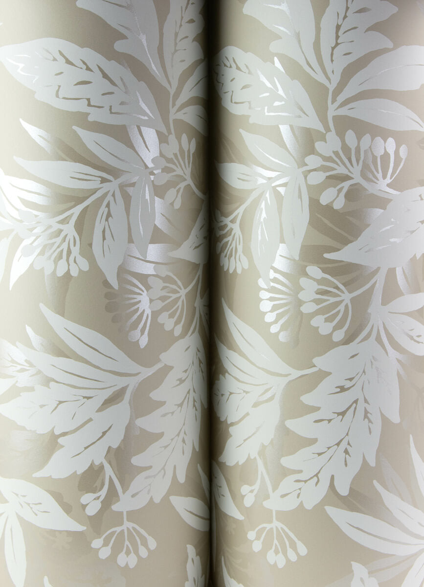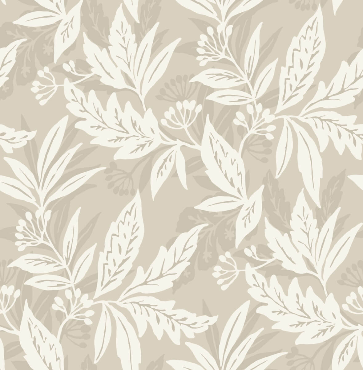 Simple silhouettes of leafy, woodland flowers gain added sophistication from metallic shadowing. Seen here inked in ivory shadowed by metallic silver against a beige backdrop. Anita is an unpasted, non woven wallpaper measuring 20.5 inches wide by 33 feet long, covering approximately About 56.4 square feet square feet per roll. In its fourth wallpaper collection, Drew & Jonathan Home celebrates the signature casual and refined style of Drew & Jonathan Scott who help you re-imagine what's possible in your space through a modern assortment of geometric and nature inspired designs in a variety of elevated finishes.