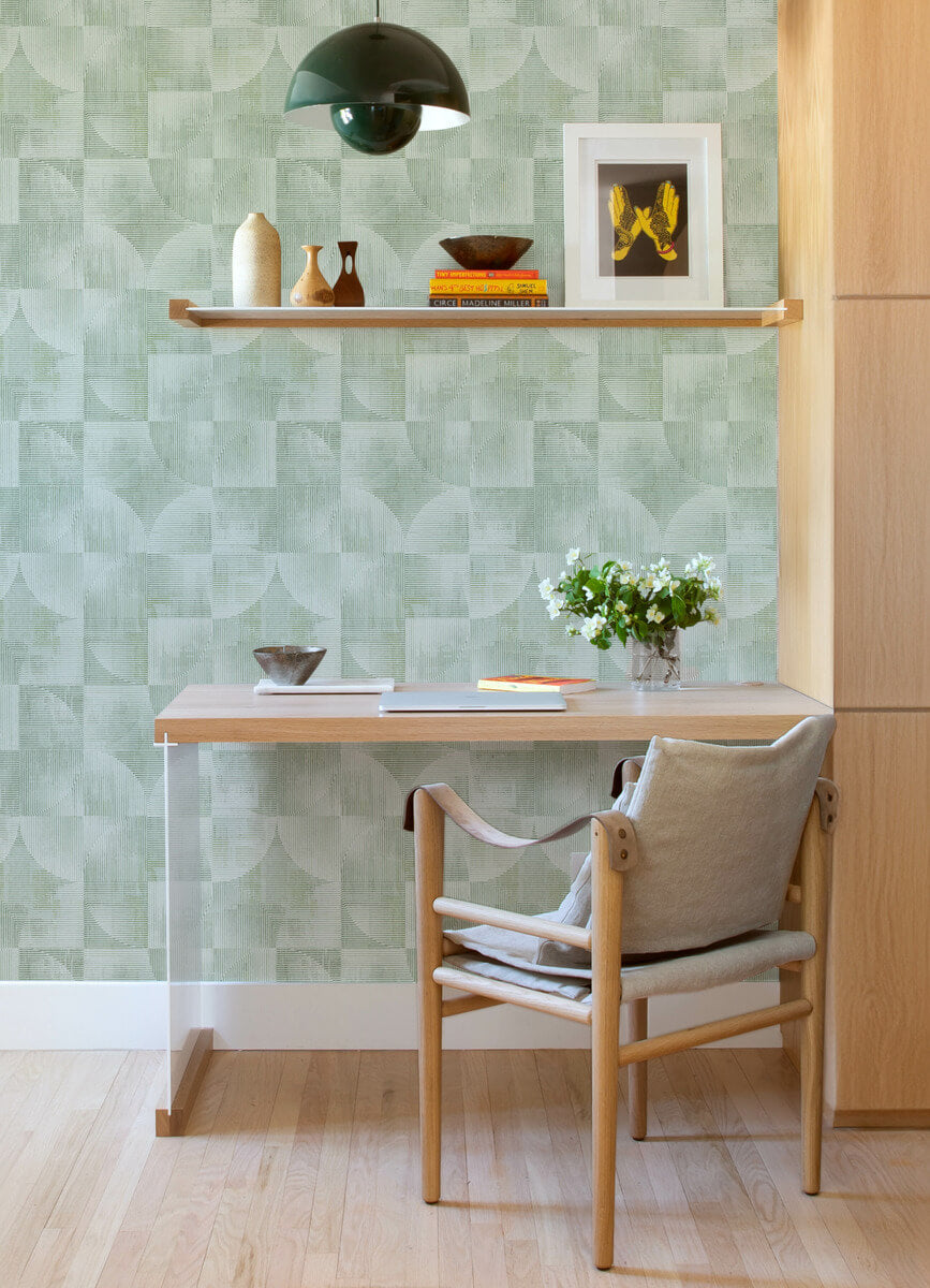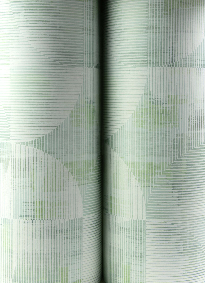 A mesmerizing, kaleidoscopic geometric is formed from layers of overlapping, raised ink shapes. Featured here in shades of green and aqua. Woodbine is an unpasted, non woven wallpaper measuring 20.5 inches wide by 33 feet long, covering approximately About 56.4 square feet square feet per roll. In its fourth wallpaper collection, Drew & Jonathan Home celebrates the signature casual and refined style of Drew & Jonathan Scott who help you re-imagine what's possible in your space through a modern assortment of geometric and nature inspired designs in a variety of elevated finishes.