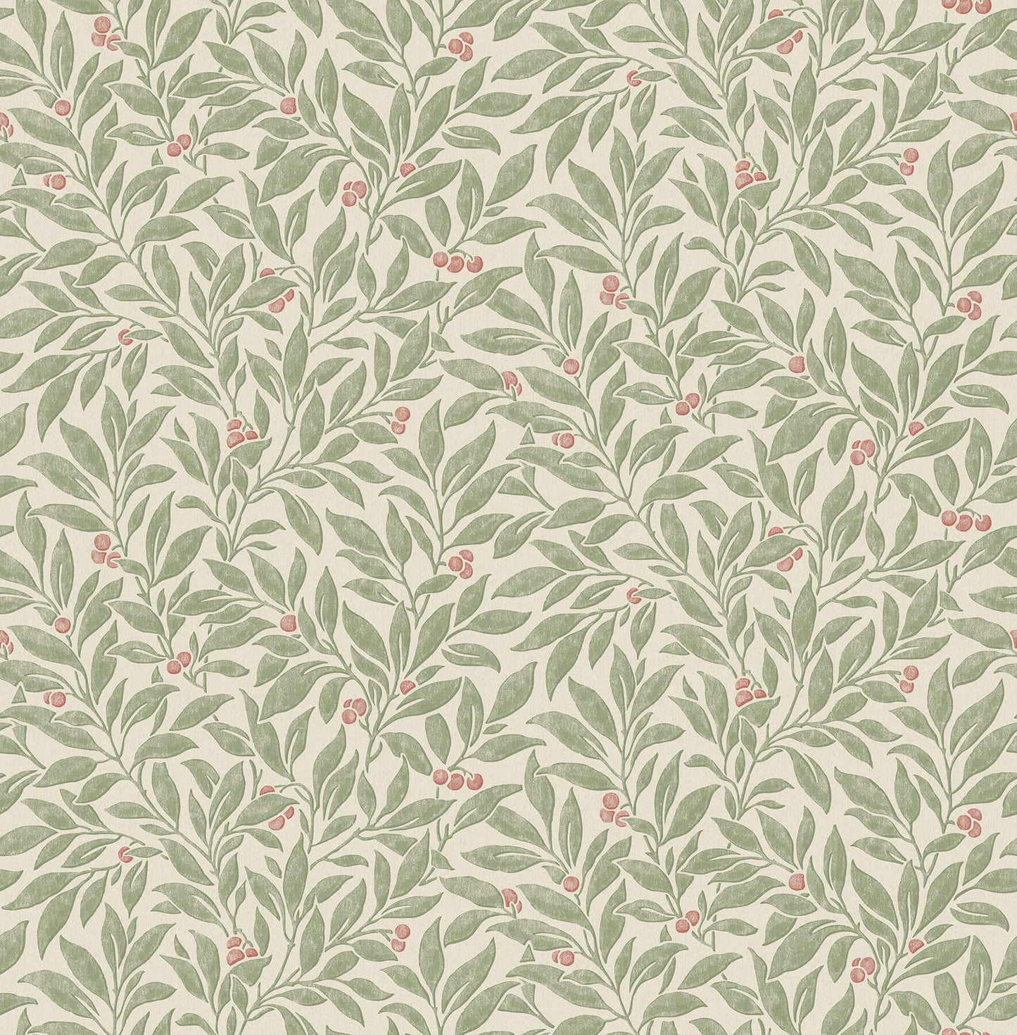 Leafy green boughs decorated with ripe red berries, all offset against a cream backdrop, make for a timeless and charming botanical wallpaper. Winter Berry is an unpasted, non woven wallpaper measuring 20.5 inches wide by 33 feet long, covering approximately About 56.4 square feet square feet per roll. Escape into the tranquil beauty of the countryside. These breath taking patterns bring the serene charm of nature into your living space, transforming any room into a peaceful retreat.
